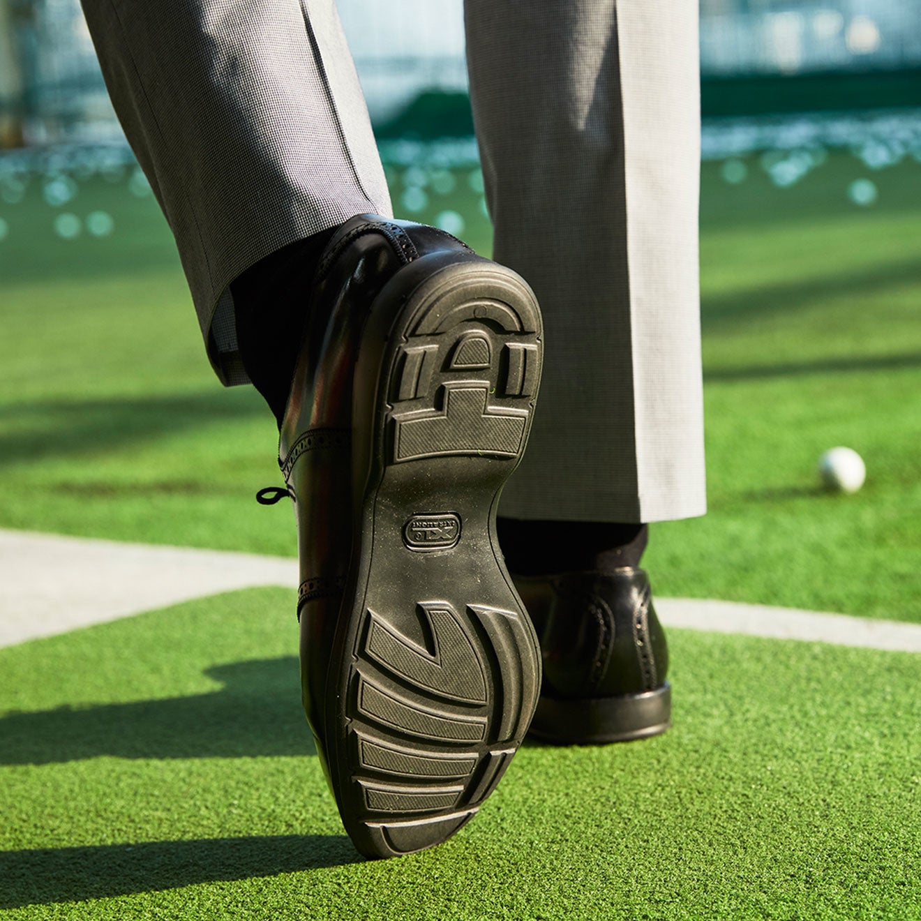 上質感のある銀付き牛革のアッパーに、クッション性に優れたイタリアF I N P R O J E C T 社のX LE x t r a l i g h tソールを組み合わせました。これにより、クラス感が求められるオンからゴルフ練習に向うアフターワークまで幅広くフィットします。ストレートチップとクォーターブローグの2 タイプ。