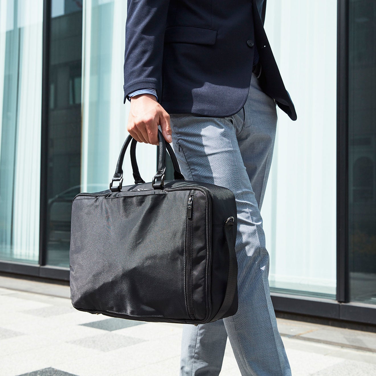 シーンを問わずに使えるよう、3 W A Y に仕上げました。内装は2 層構造で、P C や書類といった仕事道具と私物を分けて収納できます。さらには、裏地に抗菌ナイロンを使用しているので、ゴルフ練習で汗をかいた着替えも気兼ねなく入れておけます。表生地は撥水性を備えています。
