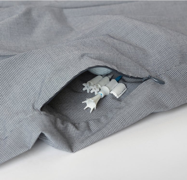 ハイパーストレッチ生地を採用し、体の動きを邪魔しません。さらにはティーやマーカーを収められるコンシールファスナーやスコアカードの収納に最適なダブルポケットなど、ゴルフに便利なディテールも載。ビジネスパンツで人気の「インビジブルファンクション」で、半永久クリースやウエストストレッチも備えビジネスでの見栄えもキープ。