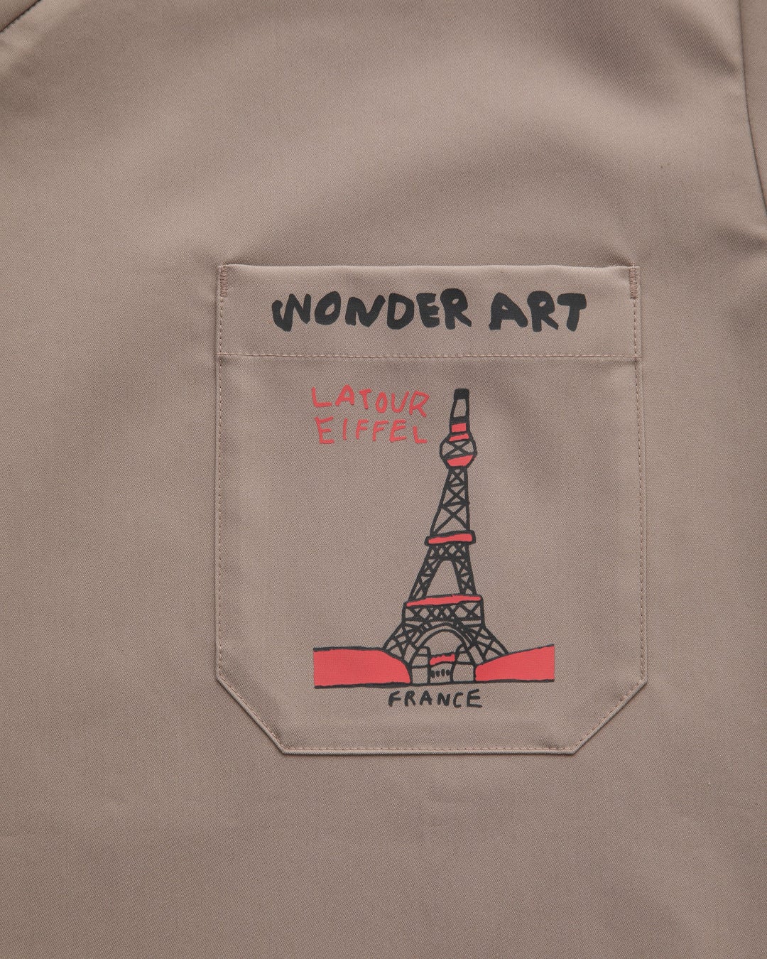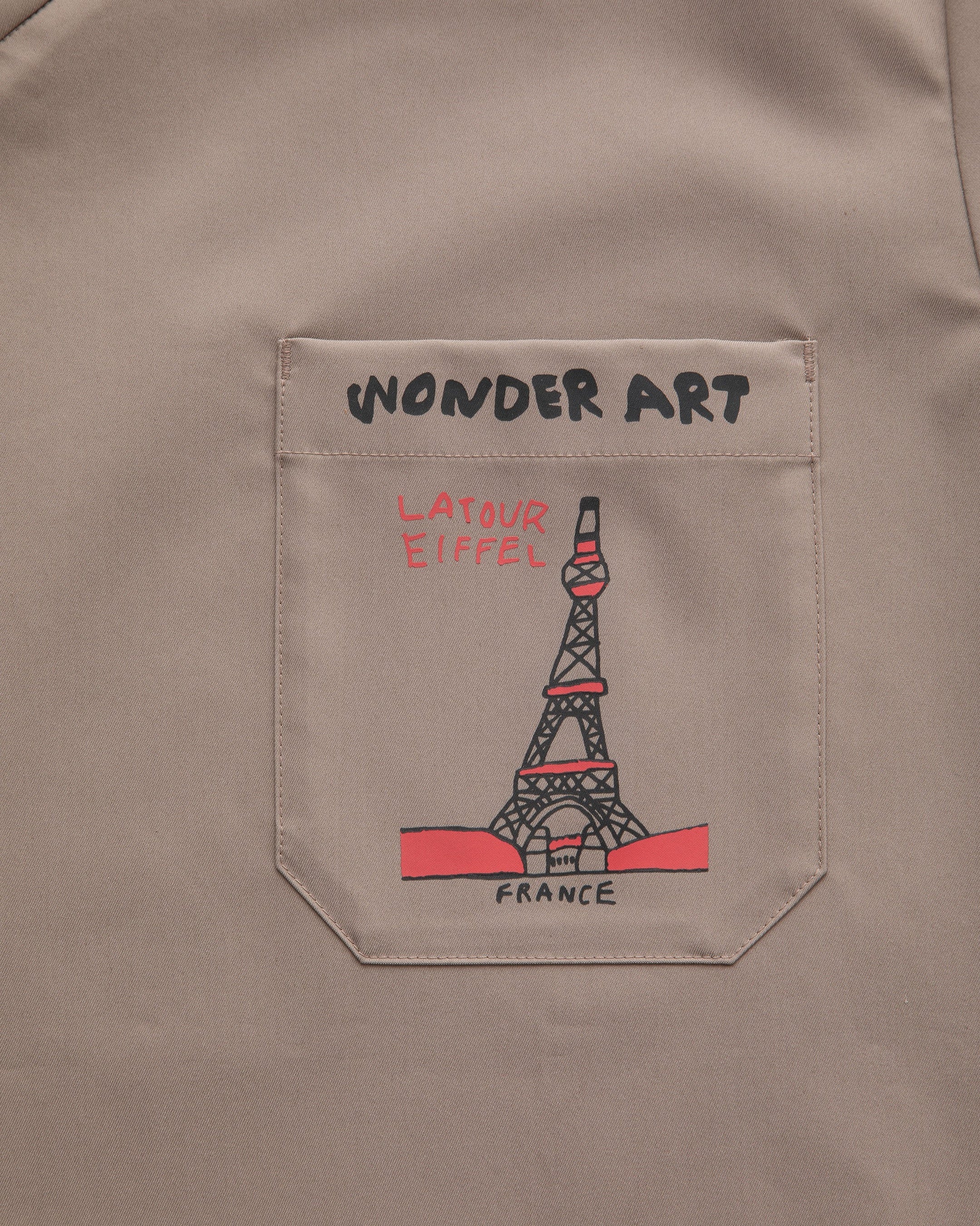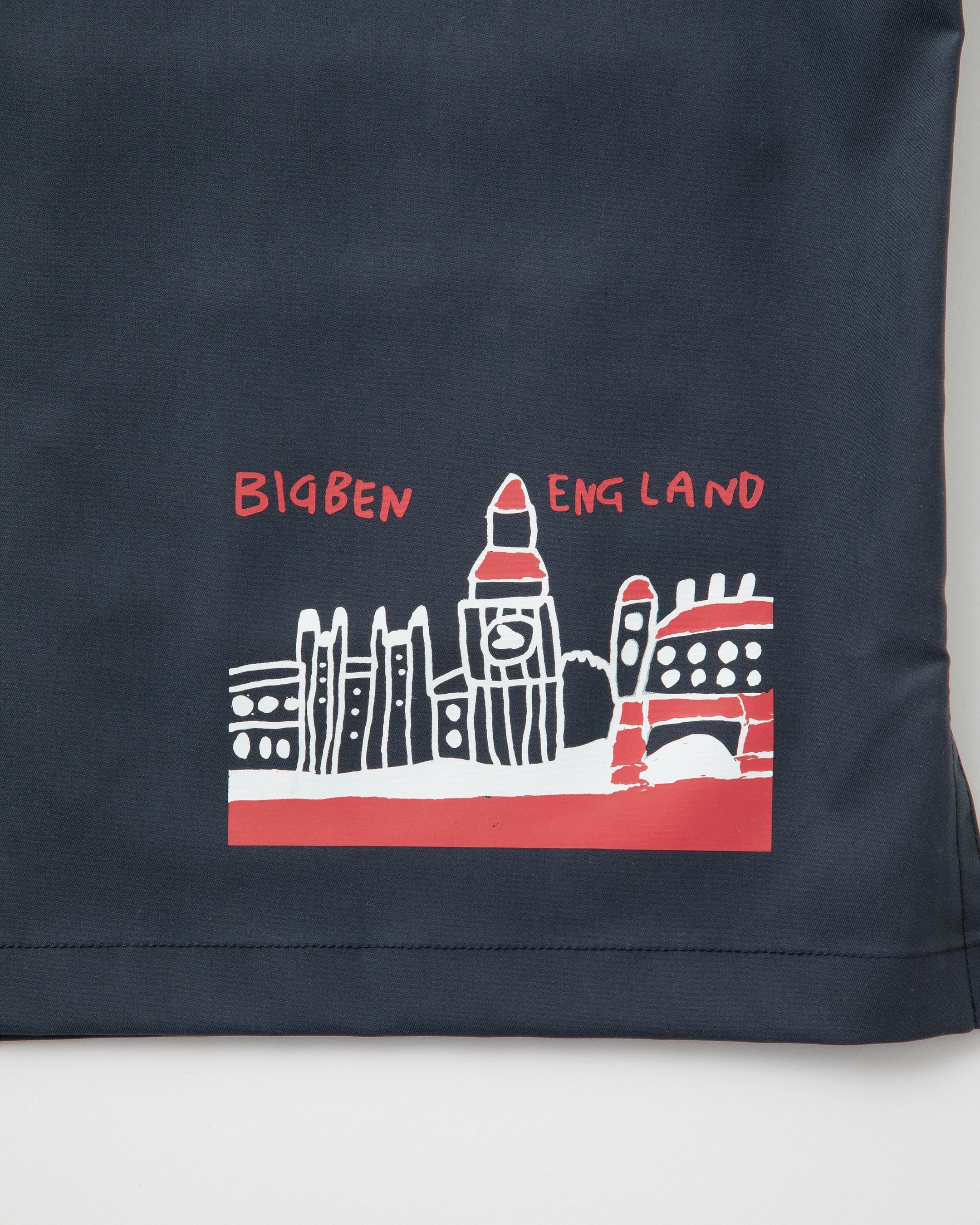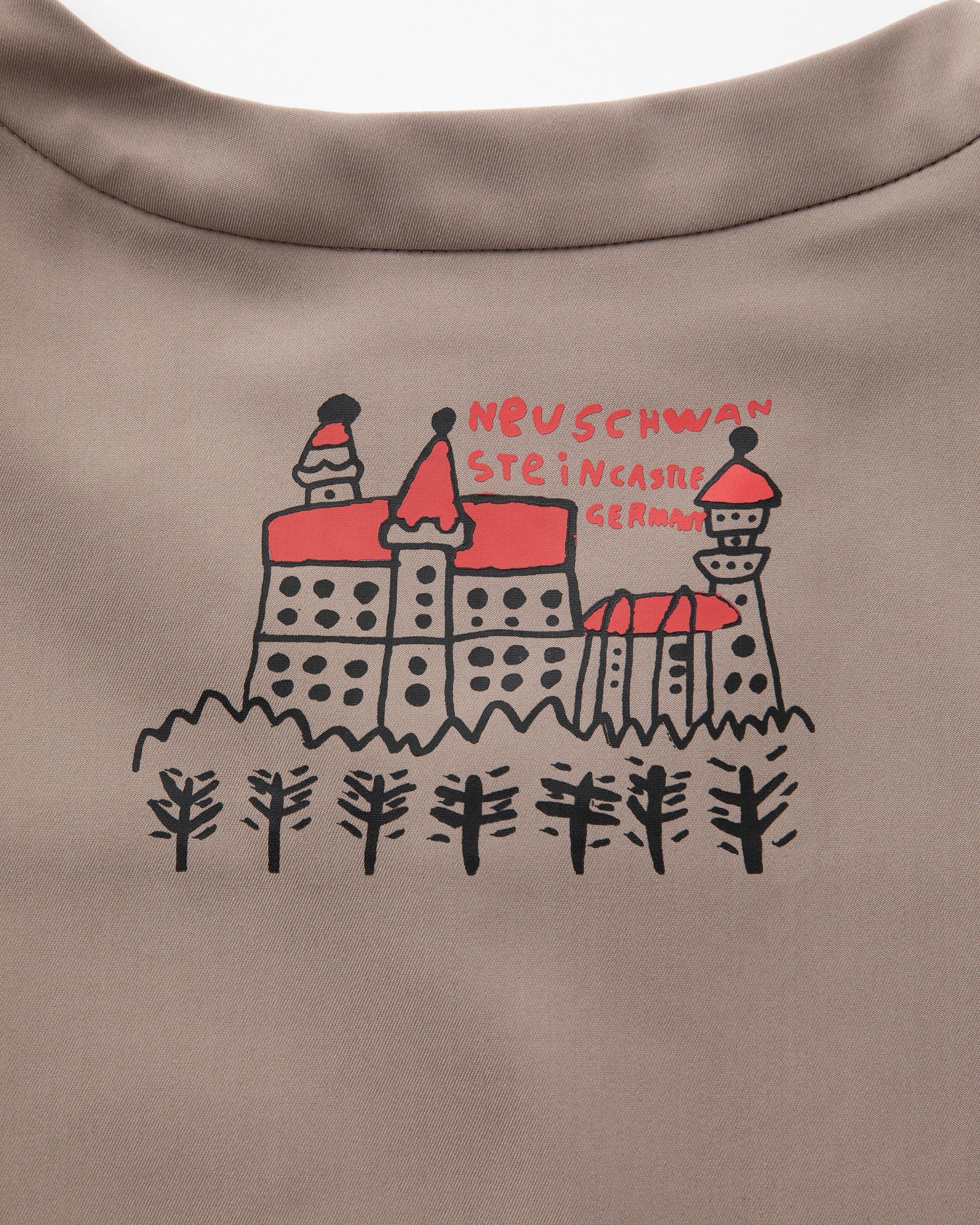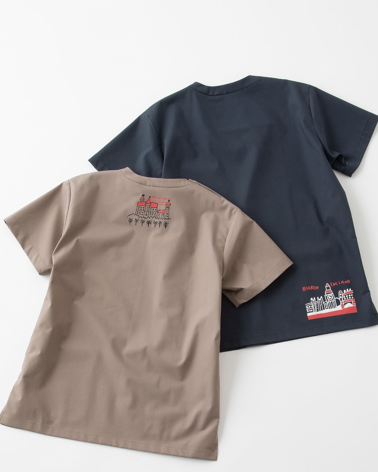 トップスのブラウンには、フランス・ドイツの観光地、ディープネイビーにはイタリア・イギリスの観光地がそれぞれ描かれています。