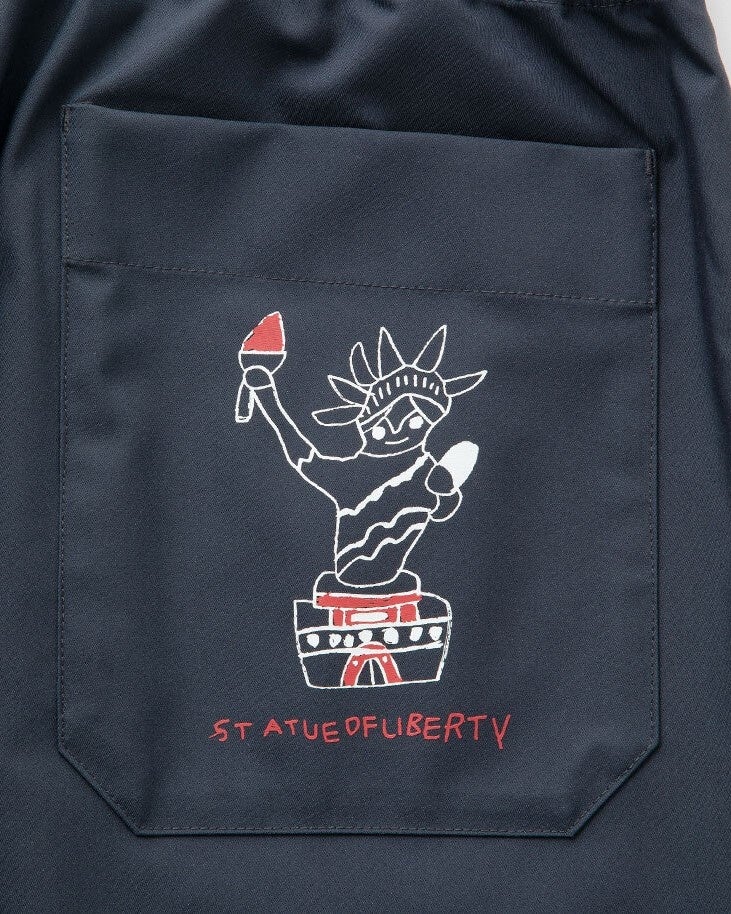 また、パンツは両色ともアメリカの自由の女神がデザインされています。世界の各国の風景を身にまとい、ぜひ楽しんでいただければと思います。