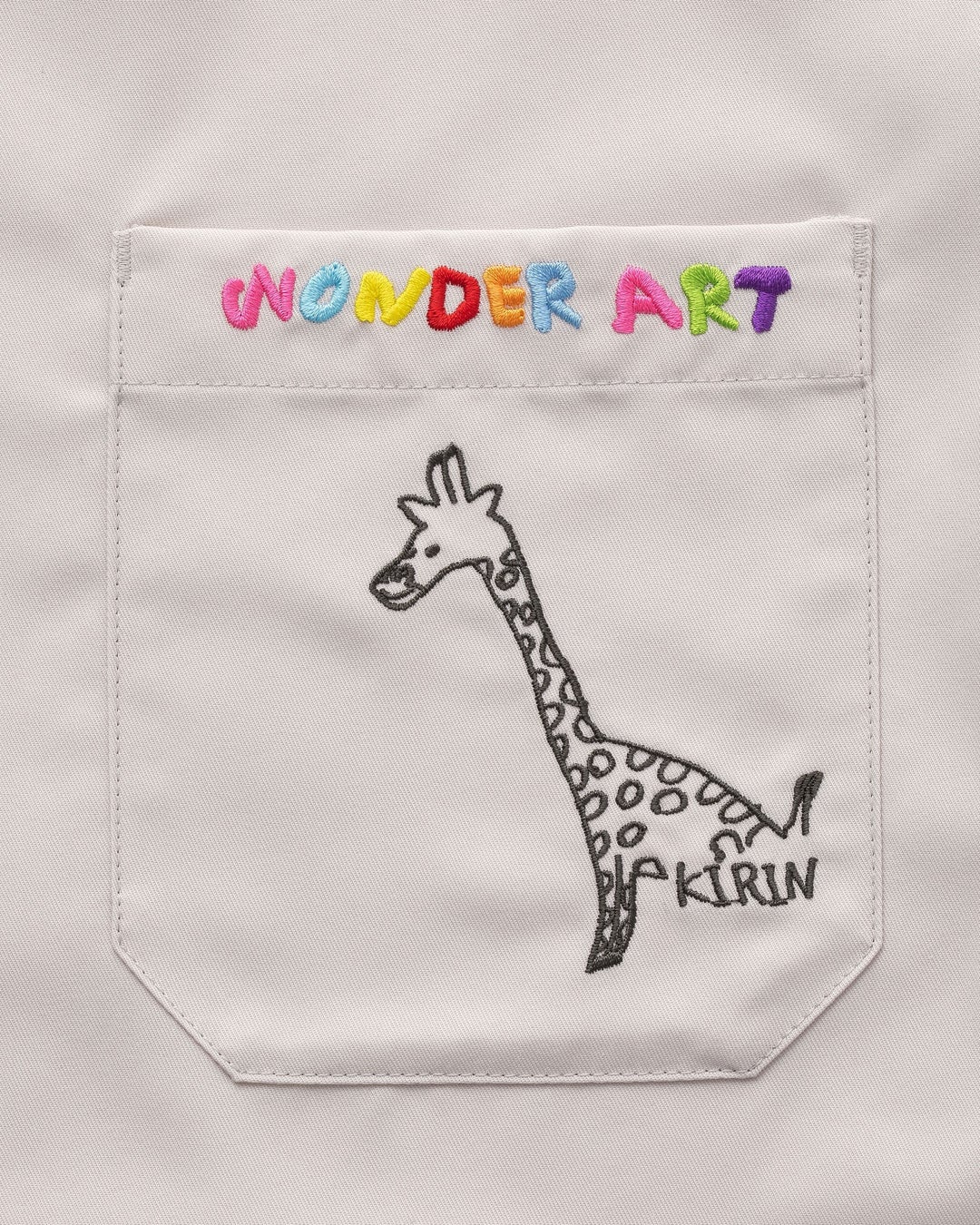 トップスのオフホワイトにはゾウやライオンなどの陸上の動物たち、ライトグレーにはペンギンやシロクマといった海の動物たちの刺繍が施されています。