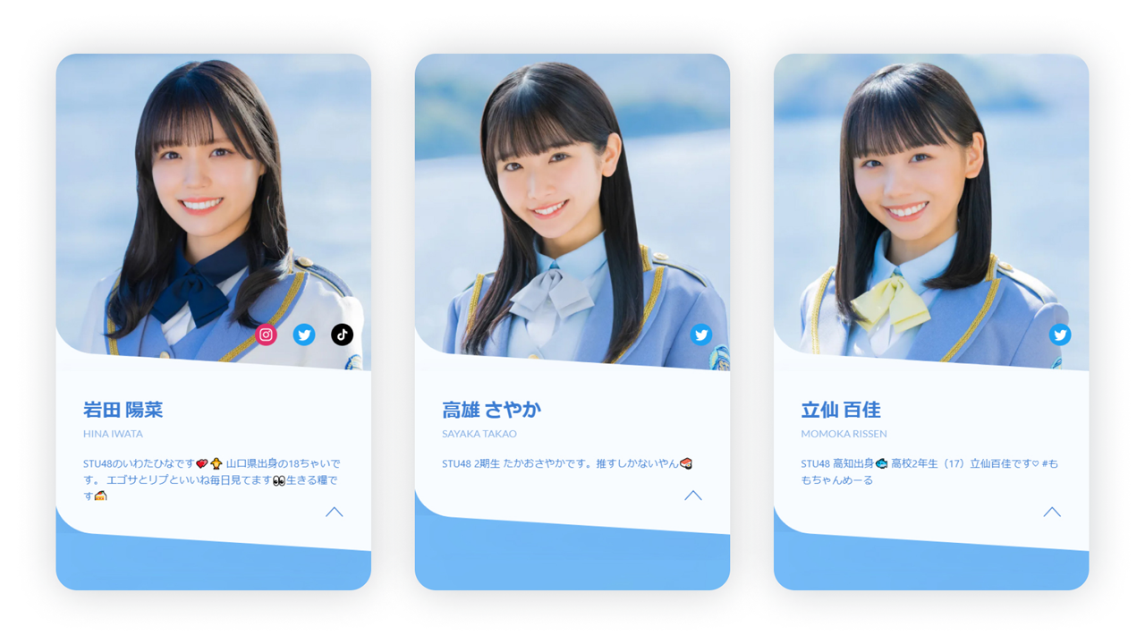 株式会社サイバーエージェント(本社:東京都渋谷区、代表取締役:藤田晋、東証一部上場:証券コード4751)の連結子会社である株式会社CAM(本社:東京都渋谷区、代表取締役社長:飯塚勇太、以下CAM)は、運営するLink in bioサービス「Blink(ブリンク)https://get.fensi.plus/blink」にて、秋元康氏のプロデュースにより2017年に誕生した女性アイドルグループ『STU48(エスティーユーフォーティーエイト)』のメンバー個別アカウントを2022年1月8日より公開いたしました。