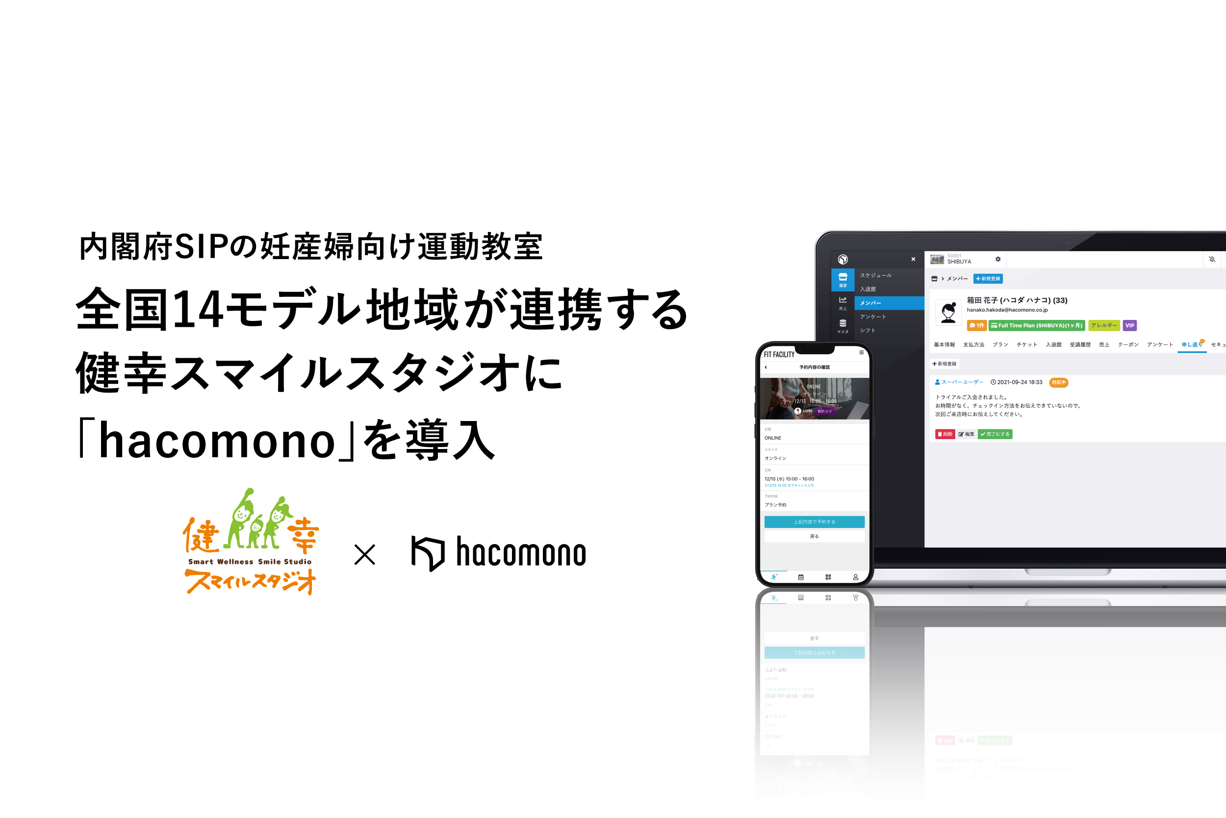 内閣府SIPの全国14モデル地域が連携する妊産婦向け運動教室「健幸スマイルスタジオ」の運営に「hacomono」を導入。オンライン✖️リアルのハイブリット型で全国にいる妊産婦のからだとこころをケア