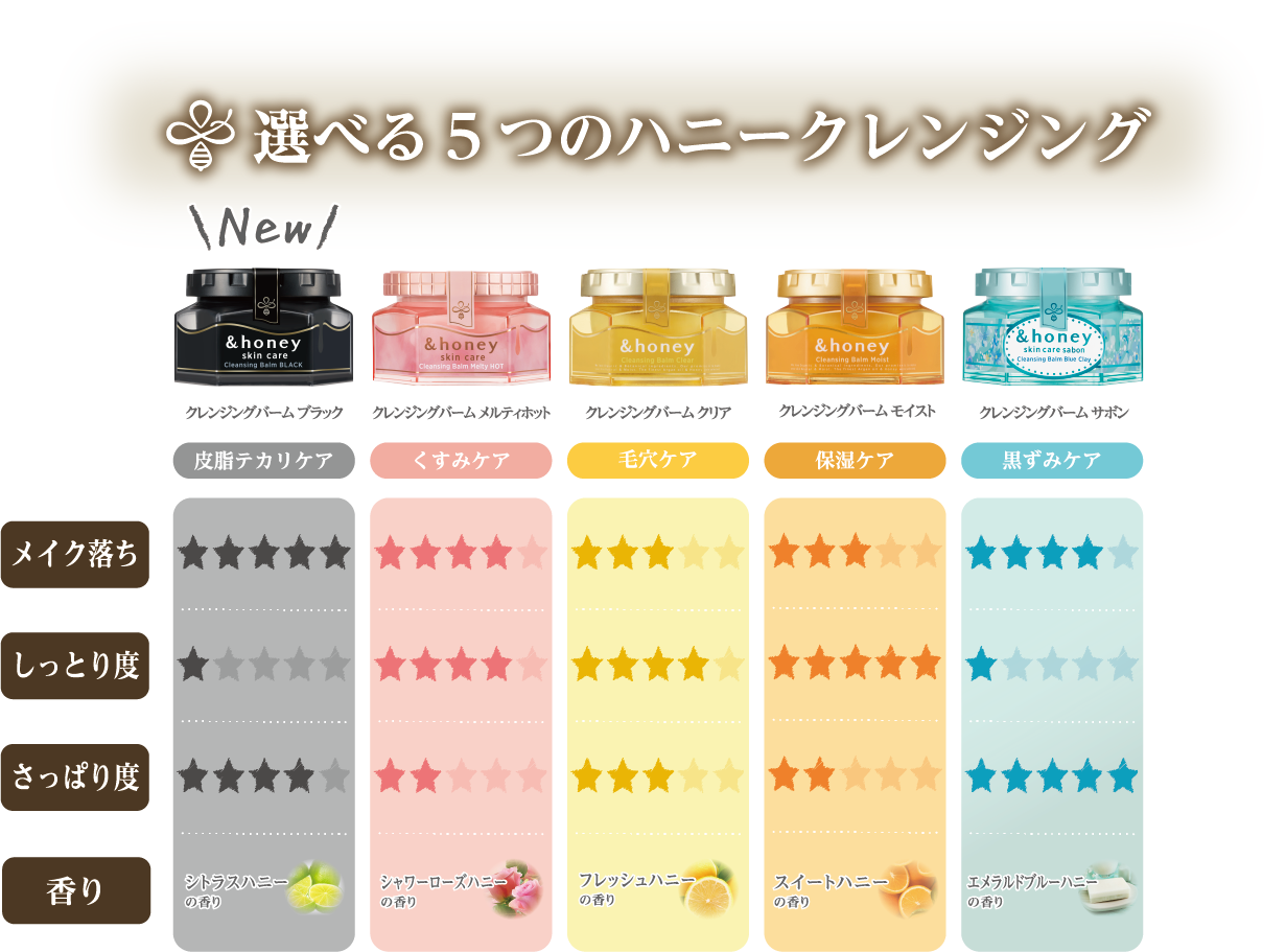 『&honey クレンジングバーム』は「落として肌潤う、ハチミツ美容」をコンセプトに保湿力にフォーカスしたシリーズを展開しております。