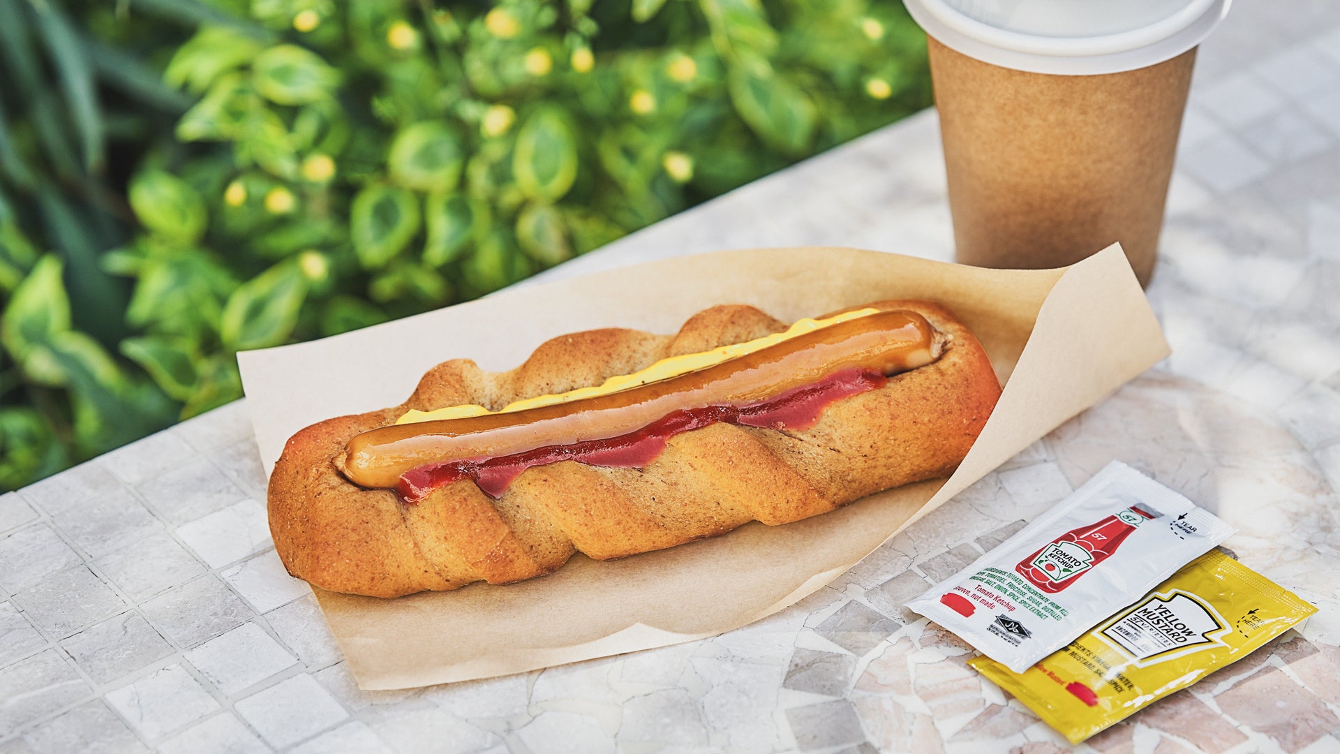 ソーセージは、脂質が少ないものを使用していますが、それでも食べた時の満足感を得られるようにするため、燻製の香りが良いものを採用しています。マスタードは粒入りものを使用し、ケチャップとのバランスが良くなるよう使用量にも工夫をしています。