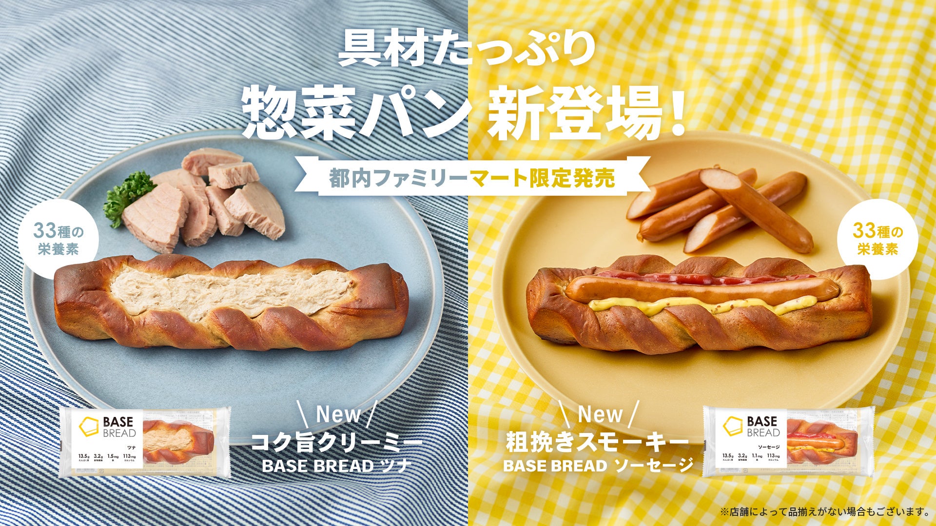 世界初※1の完全栄養※2の主食を開発・販売するベースフード株式会社(本社:東京都目黒区、代表取締役:橋本舜、https://basefood.co.jp)は、1食に必要な33種類の栄養素がすべてとれる完全栄養パン※4「BASE BREAD」シリーズ初となる惣菜パン「BASE BREAD ソーセージ」、「BASE BREAD ツナ」の2種類を、2024年5月14日(火)より東京都内のファミリーマート限定にて新発売します。