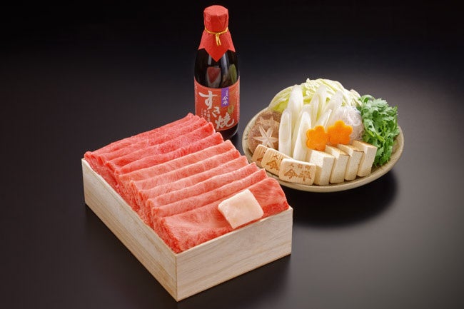 人形町今半すき焼きセットは最高ランクのA4・A5の黒毛和牛の雌牛のみ使用。すき焼に最適な部位の肩・肩ロース肉をご用意いたしました。すき焼き用に薄くスライスし、一枚一枚丁寧にフィルムをかけた精肉に、割下、すき焼きにぴったりの具材のしいたけ、にんじん、長ネギ、春菊、丁字麩、白滝、を全てとり揃えたすき焼きセットです。お鍋とコンロがあれば、ご自宅であっという間に有名店のすき焼きがお楽しみいただけます。