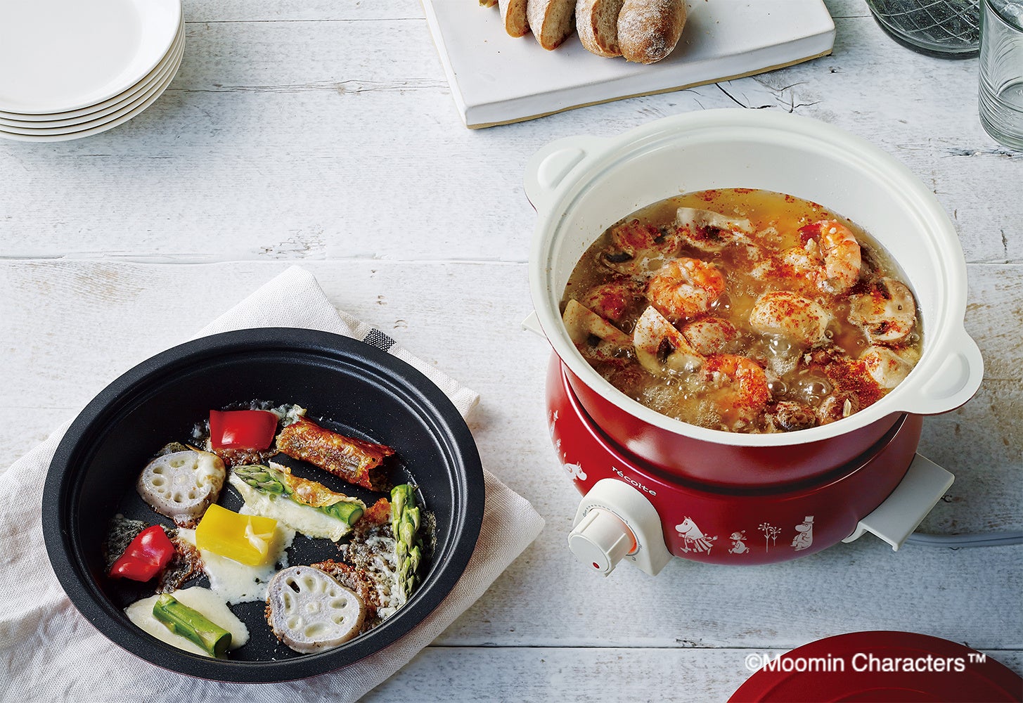 マットな琺瑯調のお鍋に、本体にはかわいいムーミンが。冬にぴったりのメニューをあつあつのままテーブルでどうぞ。