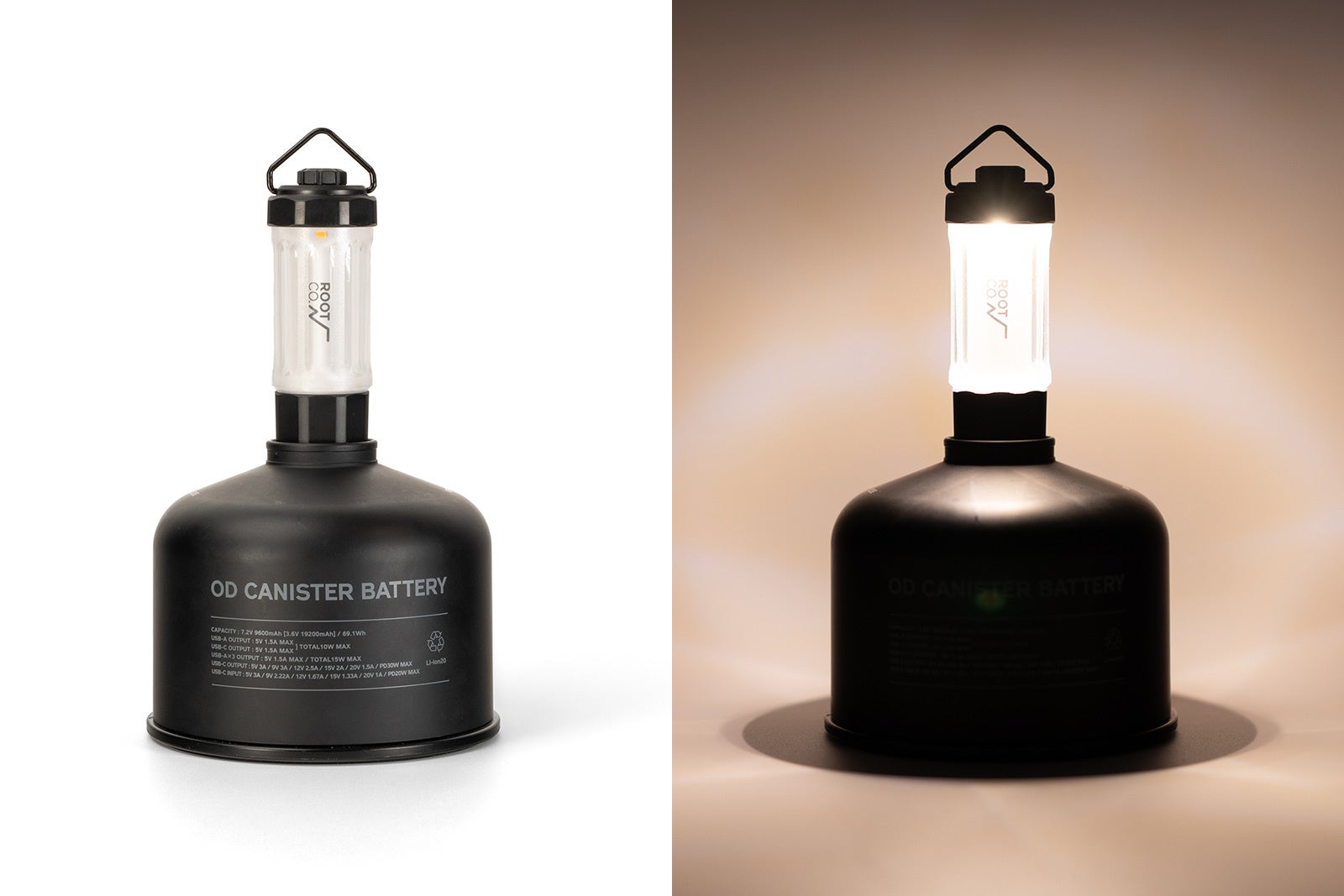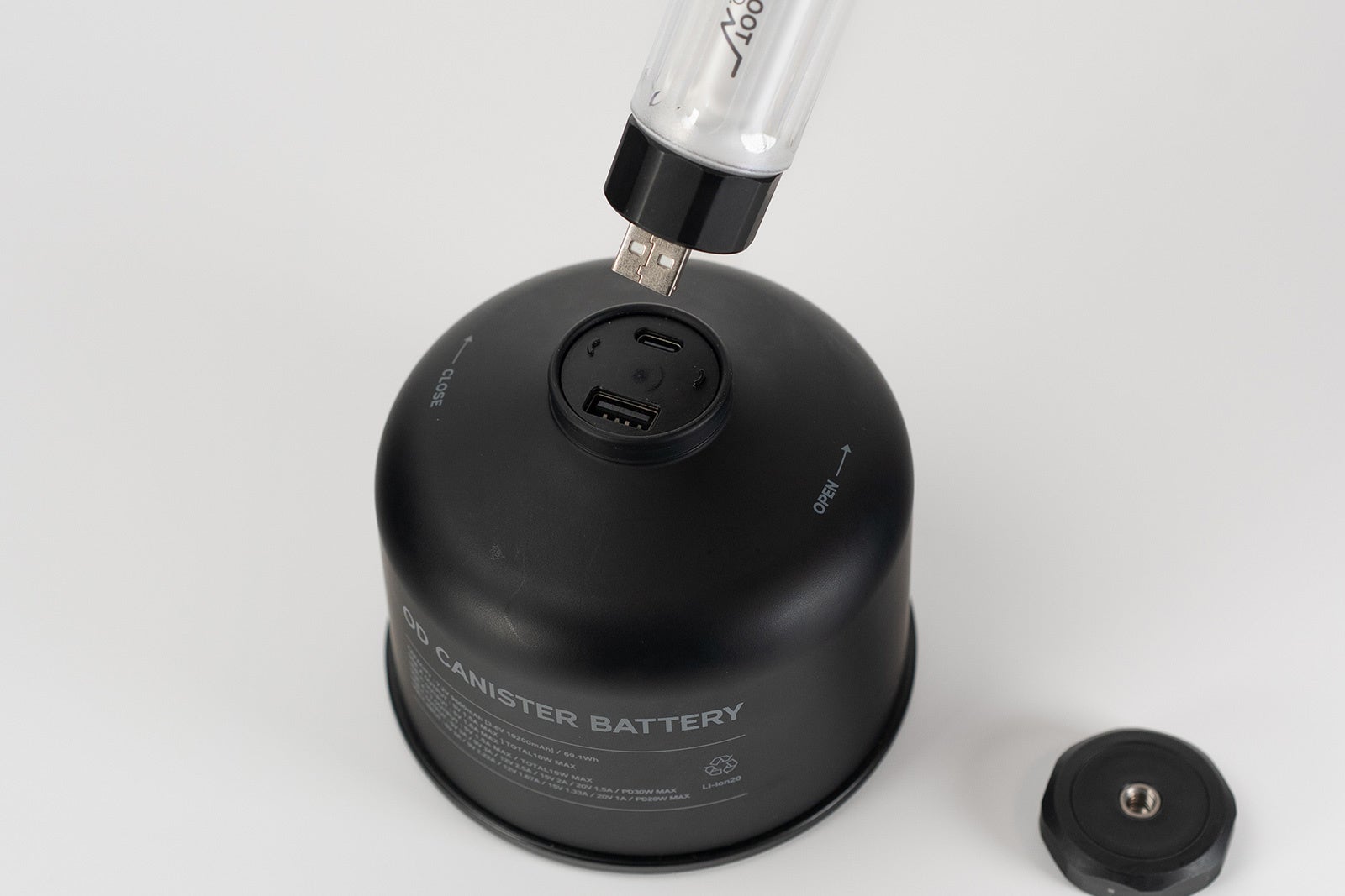 "給電"と"スタンド機能"を一体化したスマートな使用が可能になる、「OD CANISTER BATTERY」のためのランタンです。