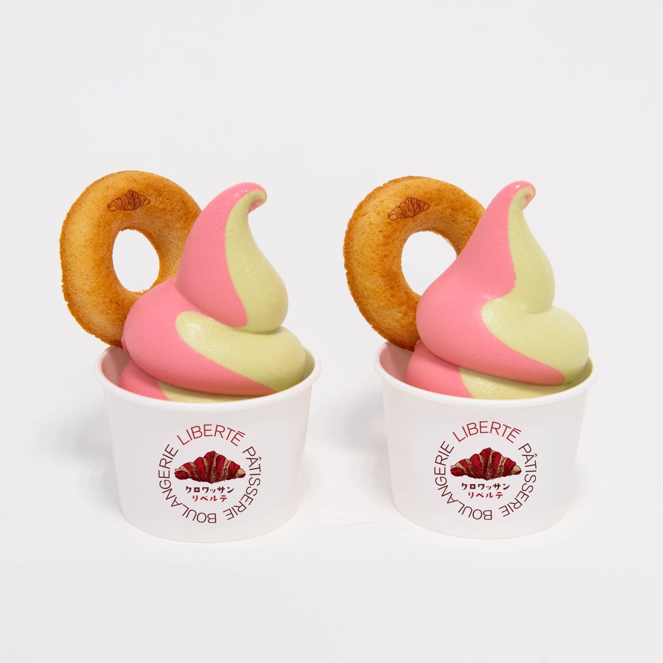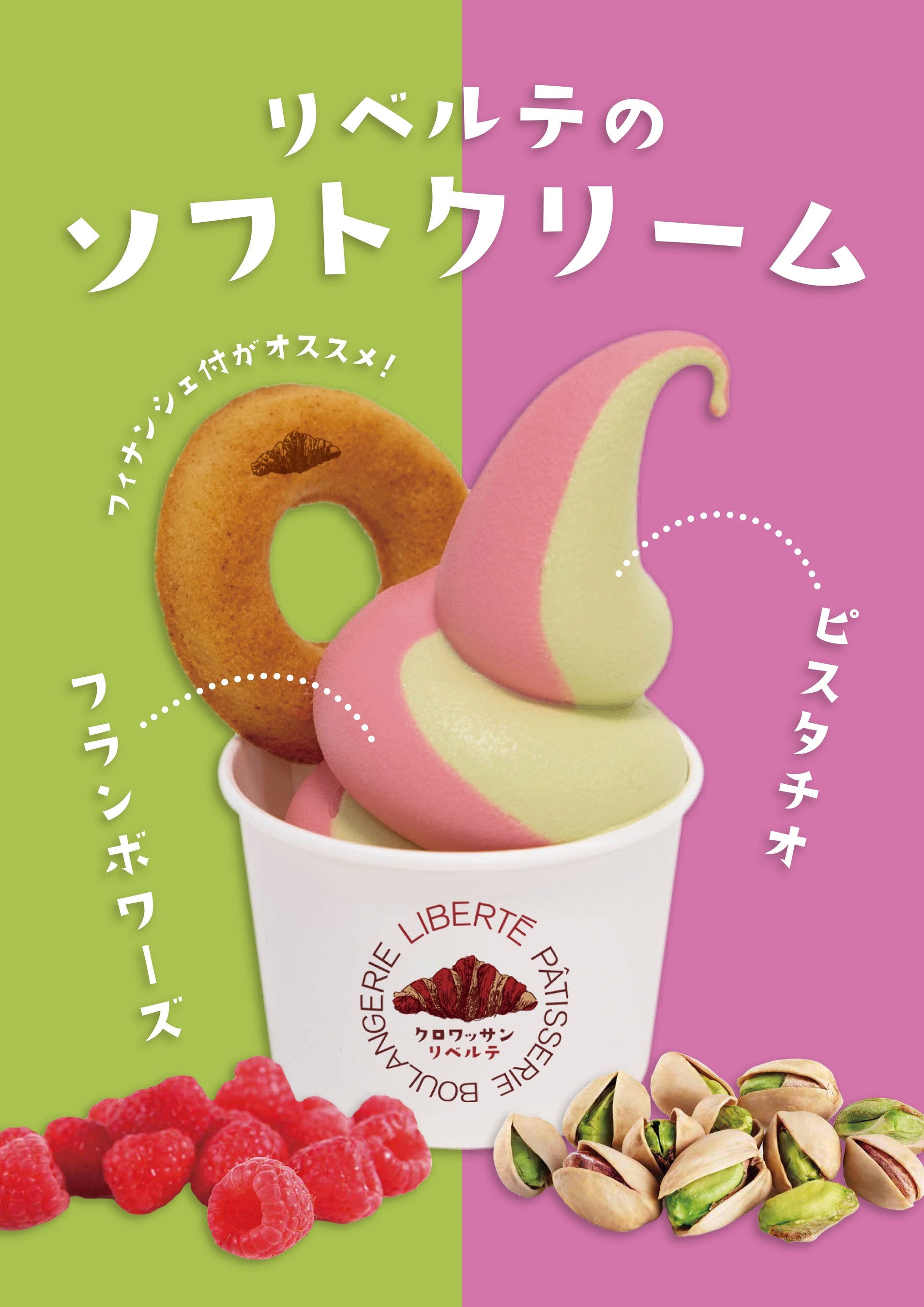 フランスの定番ナッツ&果物、「ピスタチオ」と「フランボワーズ」の味わいを一度に楽しめる、ブランド初となる見た目も可愛いカラフルなソフトクリームがリベルテ京都清水店限定で新登場します。クリーミーでなめらかな舌触りと共に、フランボワーズの甘酸っぱさと、ピスタチオのコクが感じられるソフトクリームです。フランスの発酵バターの香り豊かなリング型のフィナンシェをトッピングして、ソフトクリームをディップしながらお楽しみください。