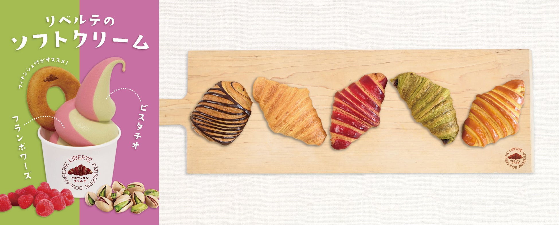 京都清水店限定、京都老舗宇治茶専門店の抹茶と餡子のクロワッサンや、厳選したバターを贅沢に使ったクロワッサンシリーズを販売。ブランド初の2種の味わいを一度に楽しめる、カラフルなソフトクリームが新登場!