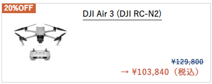 DJI Air 3 Fly More Combo (DJI RC 2) プロペラガード付きフライトセットなら通常価格より22%オフ!