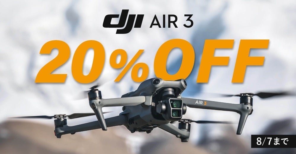 初心者でも操作しやすい高性能な人気ドローン「DJI Air 3」が20%オフになるセールを8月7日まで実施中!