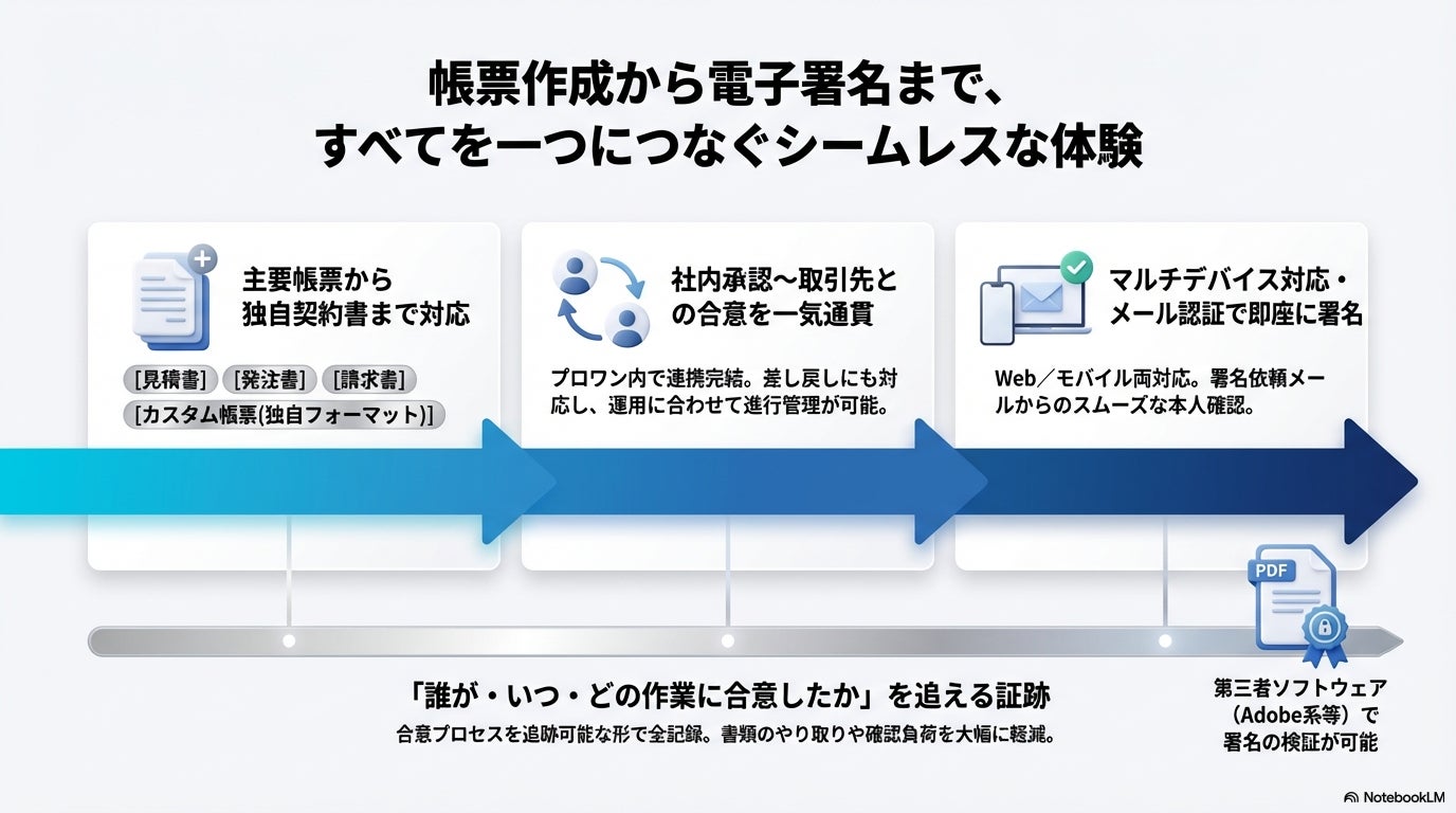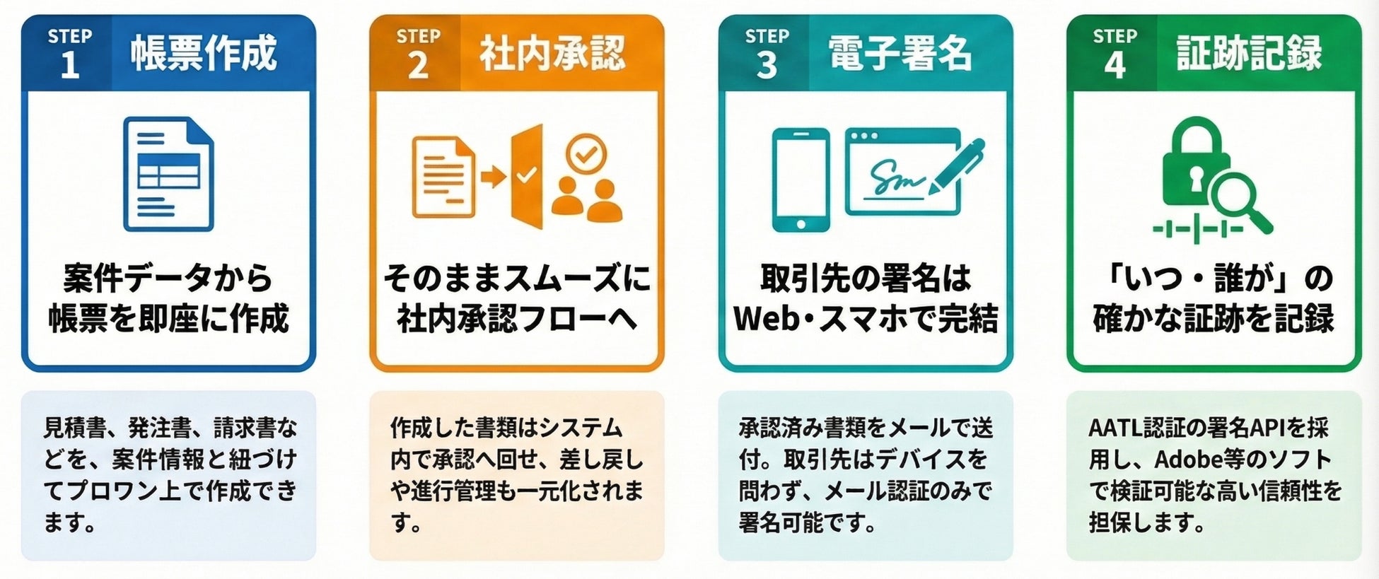帳票作成→承認→電子署名までをプロワンで一気通貫