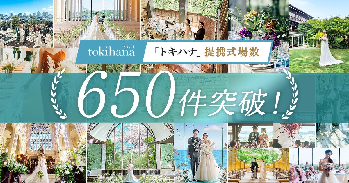 LINEでできる式場探し『トキハナ(https://tokihana.net/)』を運営する株式会社トキハナ(本社:東京都港区、代表取締役社長:安藤 正樹、以下 「トキハナ」)は、提携式場数650件を突破しました。業界を熟知した元ウエディングプランナーによって、厳選した顧客満足度の高い式場のみと提携しています。トキハナの提携式場を利用いただいたお客様に感謝するとともに、記念として『ロケーションフォト前撮りプレゼント』キャンペーンを開催します。