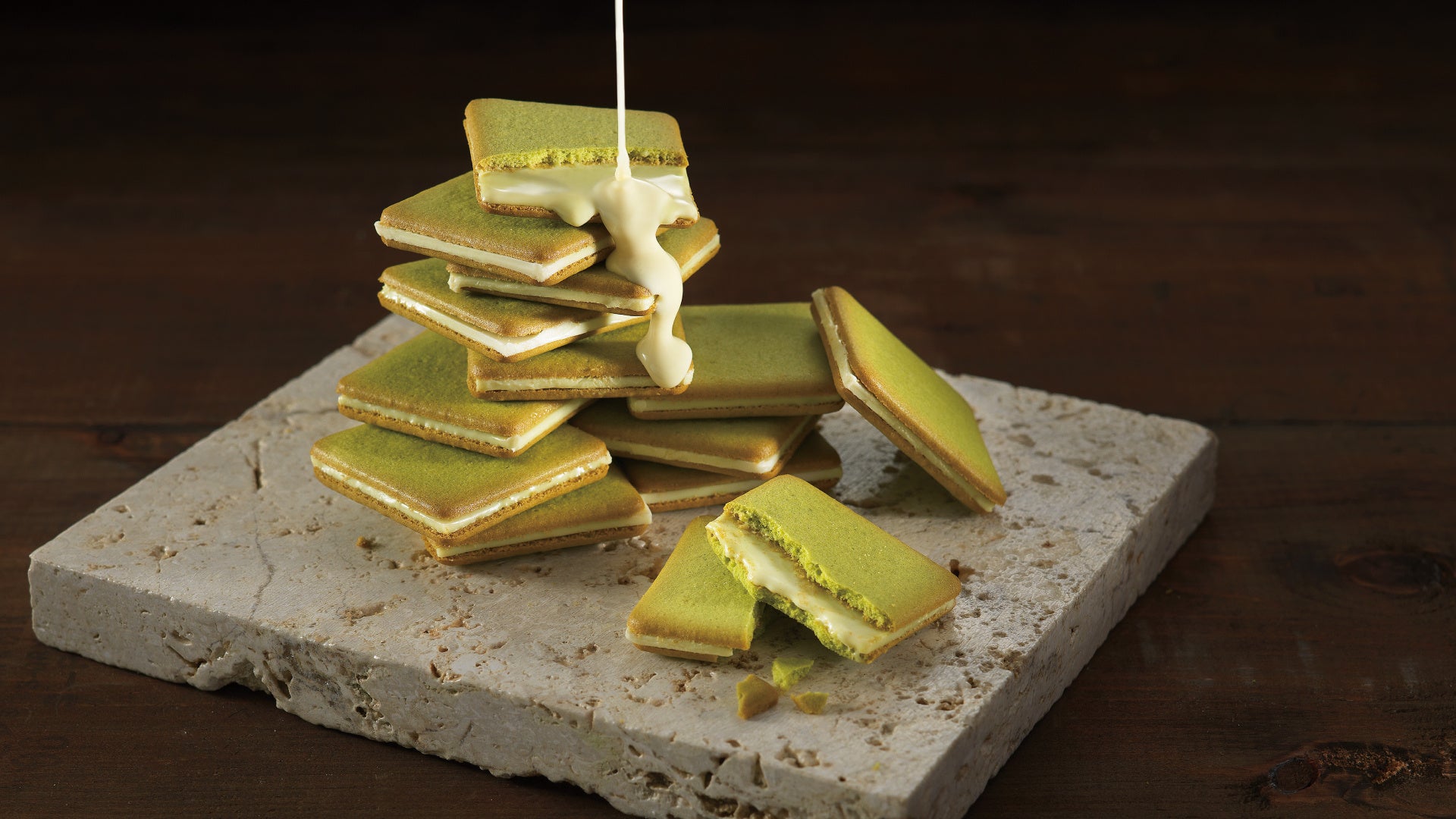 京都宇治抹茶を使ったサクサクの生地にマスカルポーネチーズを使ったチョコレートを挟みました。