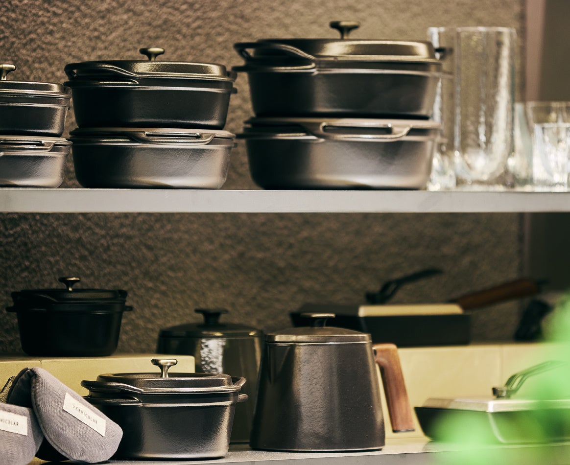 ご購入前に、バーミキュラで調理した料理の味や製品の使い心地をお試しいただける体験型のショップ。バーミキュラを知り尽くしたコンシェルジュが調理実演を交えながらお客様のご要望にお応えすることはもちろん、お客様ご自身が実際に製品を使って調理を体験することも可能。バーミキュラの全ラインナップを手に取って見ることができる他、フラッグシップショップ限定の特別サイズのバーミキュラも取り揃えています。バーミキュラ製品だけでなく、アルチザン(職人)をテーマにしたキッチンウェアなどもお取り扱い予定です。