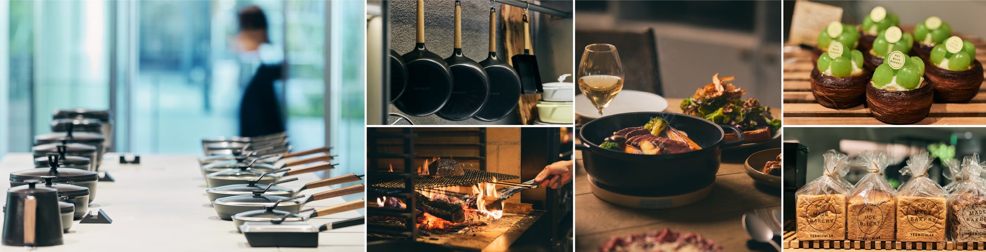 フラッグシップショップ・レストラン・ベーカリーの異なる3業態が同店舗に集約し、「最高のバーミキュラ体験」をテーマに、 “バーミキュラの料理の美味しさ”、“バーミキュラブランドの世界観”、“メイド・イン・ジャパンのものづくり”を様々なかたちでお楽しみいただけます。ショップは、バーミキュラの鋳物ホーロー鍋をはじめとする全ラインナップを取り揃え、購入前に製品をお試しいただける体験型。レストランはバーミキュラで素材本来の味を引き出した料理をランチ・カフェ・ディナーで味わうことができ、都内初出店のベーカリーは全てのパンをバーミキュラ製品で焼き上げます。