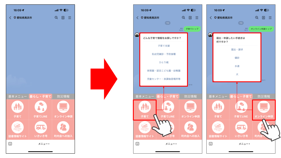 今回のリニューアルでは「子育て」や「オンライン申請」などのコンテンツに、チャットボット機能が導入されました。