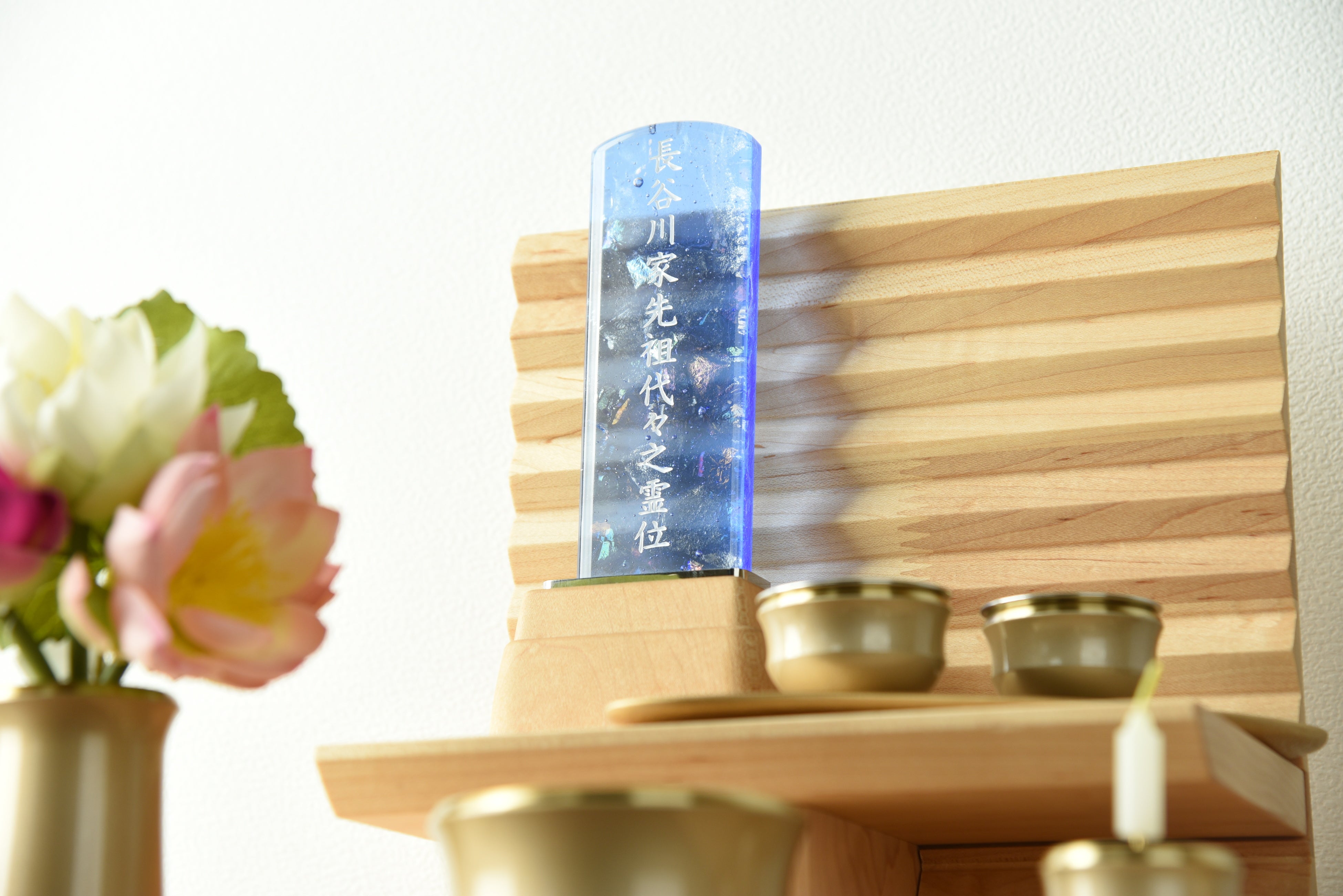 『悠璃』は、ご安置場所や光の明るさ、見る角度によってお位牌の表情が変わり、故人様が微笑みかけてくれるような温かさを演出します。