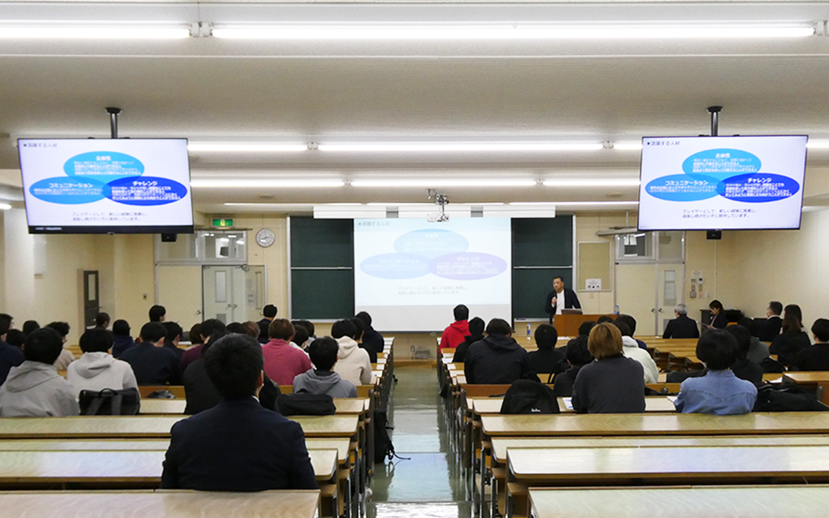 本フォーラムは、青森県主催のもと、県内企業の経営者等が大学に出向き、理工系学生に対して経営理念や社会貢献、地元で働く魅力、求める人物像などを直接伝えることを目的として実施されました。高橋は、IT業界の経営幹部として、地域産業への貢献事例やキャリア形成のヒントを紹介し、未来を担う学生に向けてメッセージを発信しました。