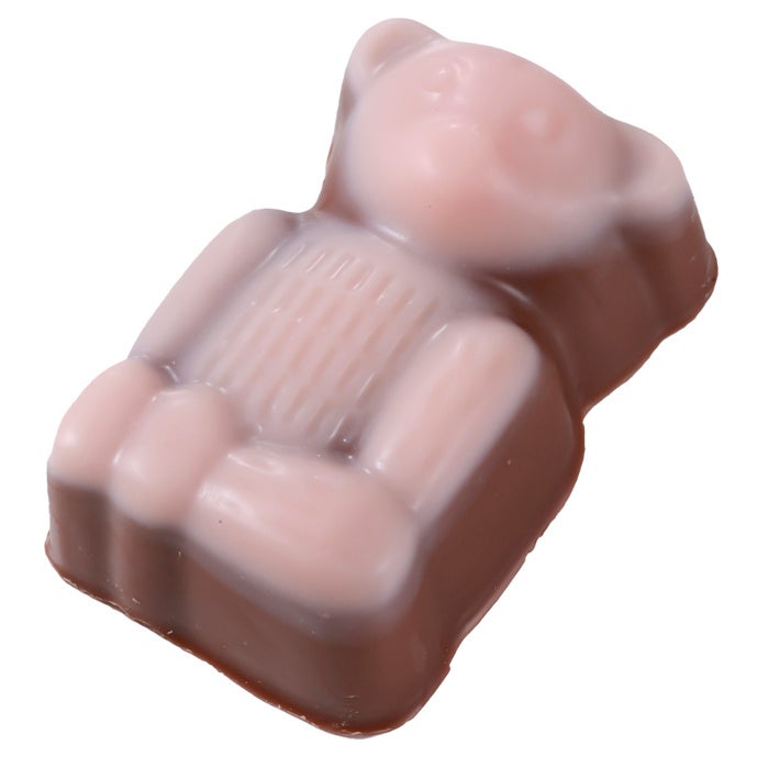 ハートのデザインを施したパレと、クマの形のショコラ、ハートのショコラとペルル クラッカントゥをブルーの缶に詰合せ。
