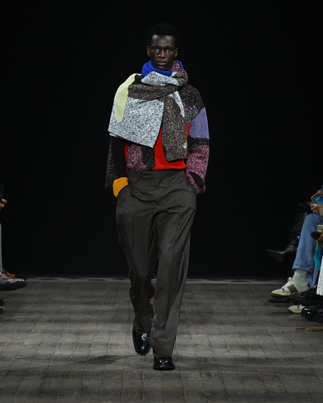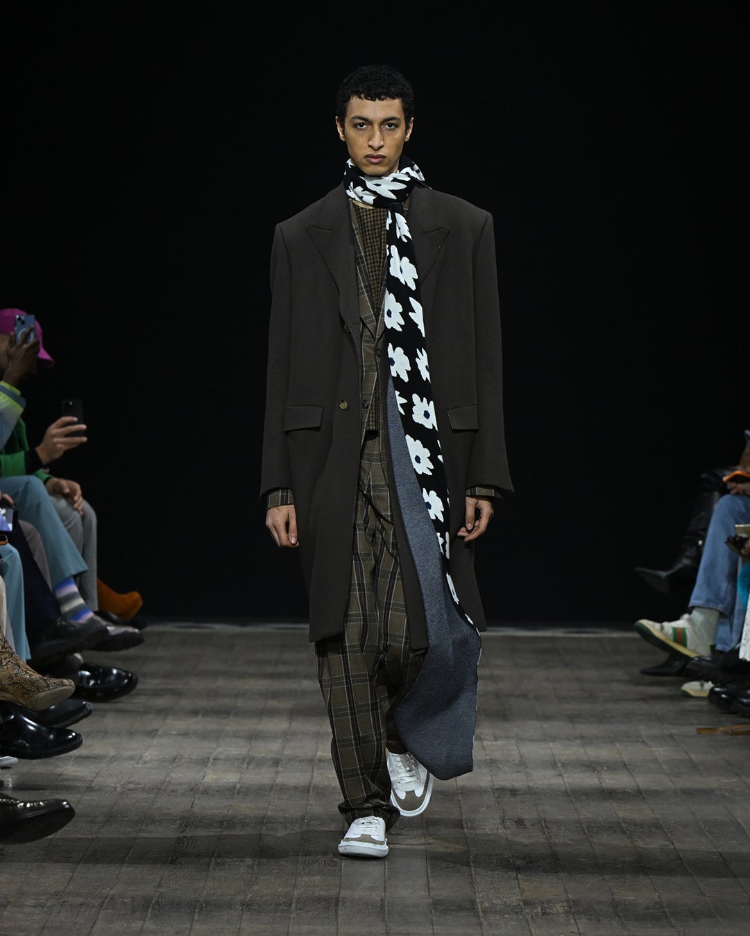 一方、ツイード、ハウンドトゥース、ブークレといった伝統的な生地は、再解釈し革新的なテクスチャーを提案しています。例えば、「フレックス」プリントやニットは、伝統的なメンズウェア素材、ツイードを再考し現代性を加えています。同様に、ウィンドーペーン、プリンス・オブ・ウェールズなど、ポール・スミスのアーカイブからインスピレーションを得た様々なチェック柄は、ブランドの持つ豊かな遺産と今シーズンのテーマを強調するとともに、カラーやプリントの下地となっています。