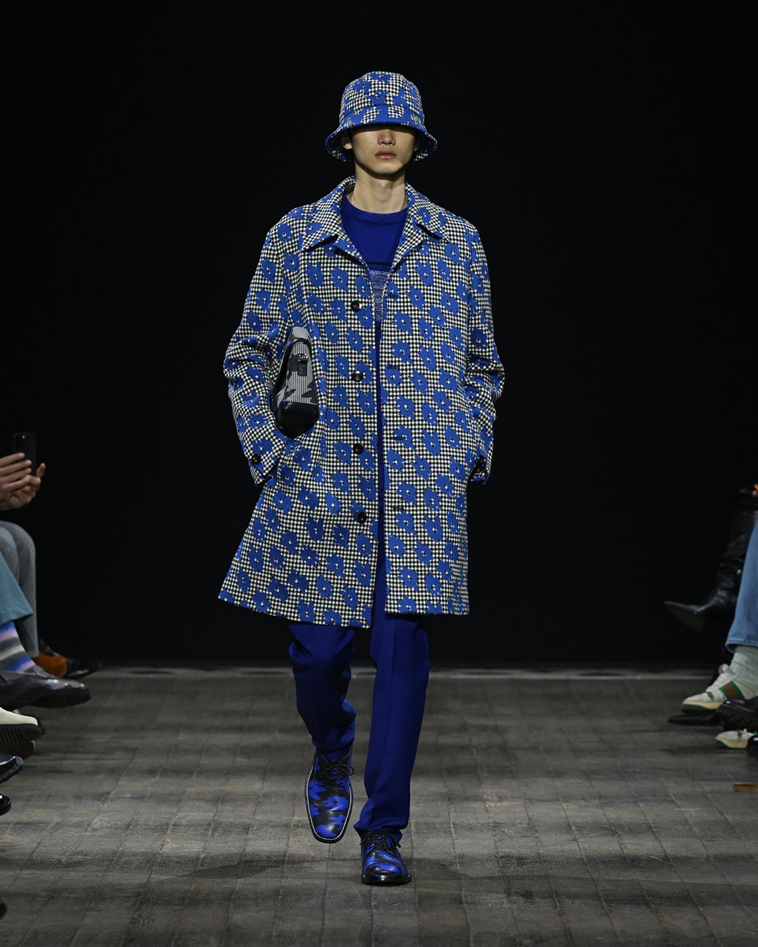 カラーパレットは、ブラック、グレー、ホワイトそして鮮やかなコバルトブルーが印象的です。一方で対照的なバーガンディ、ブラウン、モーヴといった秋らしい温かみのある色調が並ぶことによりコレクションにグラフィカルな対比をもたらします。