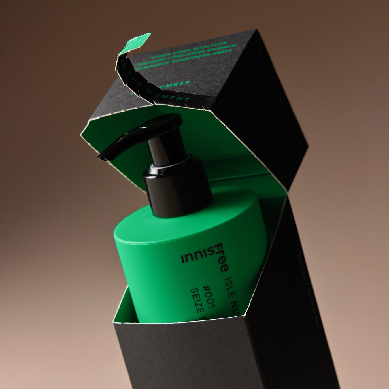 これまでのイニスフリーのデザインの枠を超えるグリーン×ブラックのパッケージで、ウッディで重厚感のある香りは男女問わずお使いいただけます。ボディ&ハンドウォッシュ、ボディローション、ハンドクリームの3アイテム展開で、2月2日(金)より表参道グローバルフラッグシップストアのみ店舗限定発売、ここでしか体験できない香りのラインナップです。
