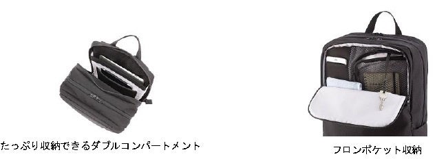 必要なものを効率よく、たっぷり収納できるダブルコンパートメント設計のバッグです。また、名刺入れやペン、メモ帳などの小物をバックの中で探し回ることがないようにフロントポケットを活用して、小分けに管理することができます。