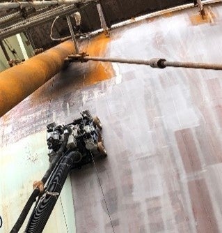 ブラストとは、表面処理加工の一種で、対象物に研削材を衝突させることで表面を斫(はつ)る物理的な処理方法です。対象となるのは、煙突、トンネル、橋梁、建屋、タンクなどの壁面が想定されます。三谷産業が提案する「バキュームマシンブラスト工法」は、一般的に広く用いられている「ハンドブラスト工法」とは異なり、足場や養生が不要で、有害な粉塵や有害物質を含む塗膜の飛散がないため、作業員や周囲環境への健康・環境被害の抑制が可能です。これまでに、原子力発電施設の煙突内壁や、球形ガスホルダーの低濃度PCB塗膜※2除去工事等の実績があります。