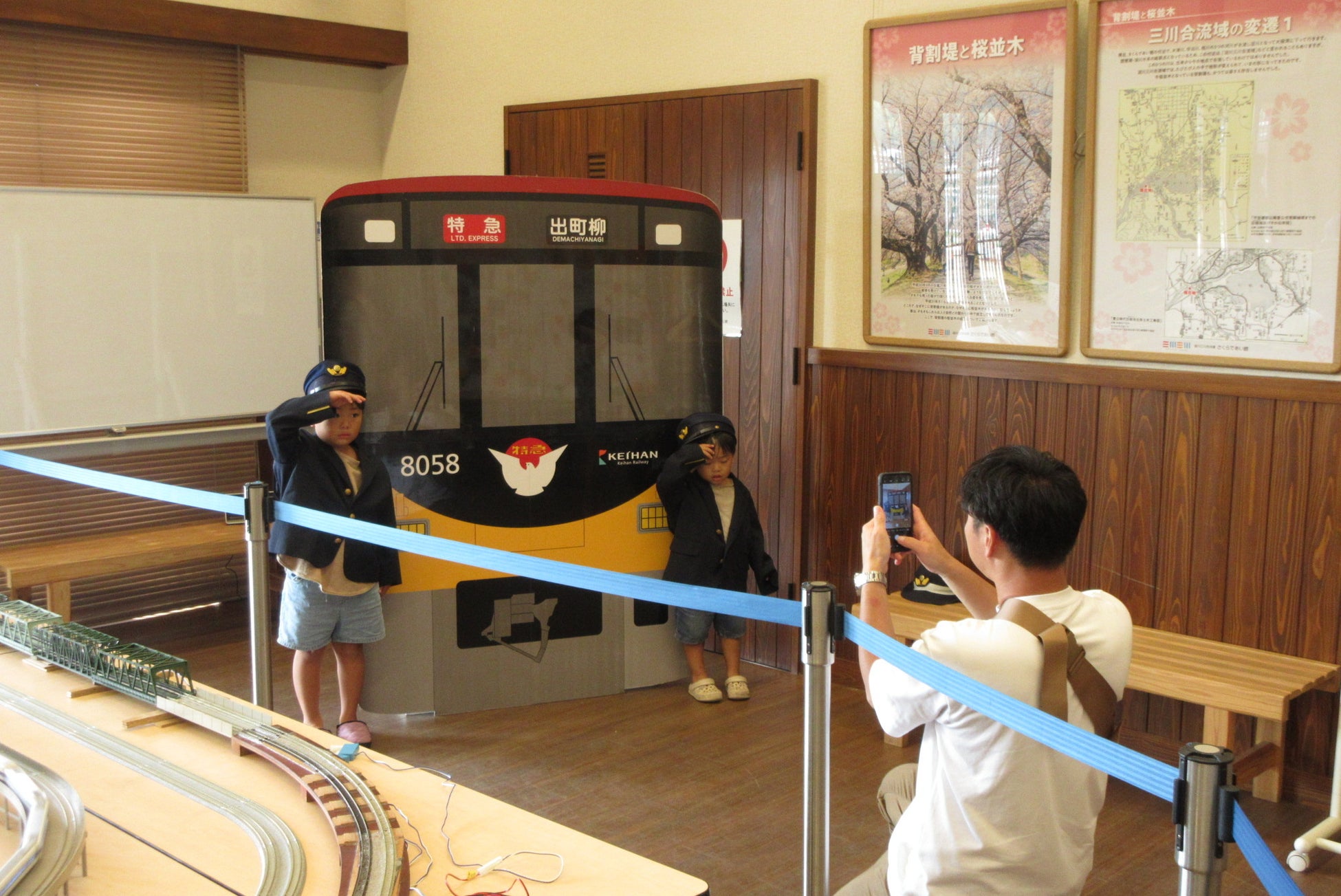 京阪電車パネル展示&こども車掌制服記念撮影コーナー