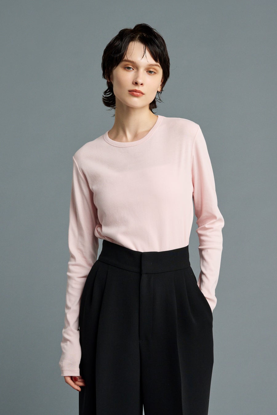 この度の「ZOZOTOWN」店OPENを記念し、『uncrave』の人気アイテムである「シアー クルーネック カットソー」の「ZOZOTOWN」店限定カラー(ピンク)を販売します。本商品は、清涼感のあるドライタッチな風合いに仕上げた、大人が着やすい上品なシアー感が特徴のカットソーです。程よくフィットするサイズ感と首元の開き具合で、ジャケットやニットのインナーにもおすすめです。