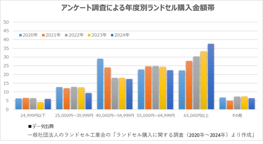 【出典:「2020〜2024年のランドセル市場はこう変わった!-3大ECモールの売上と購買動向を大公開-」(2024年8月29日公開)】