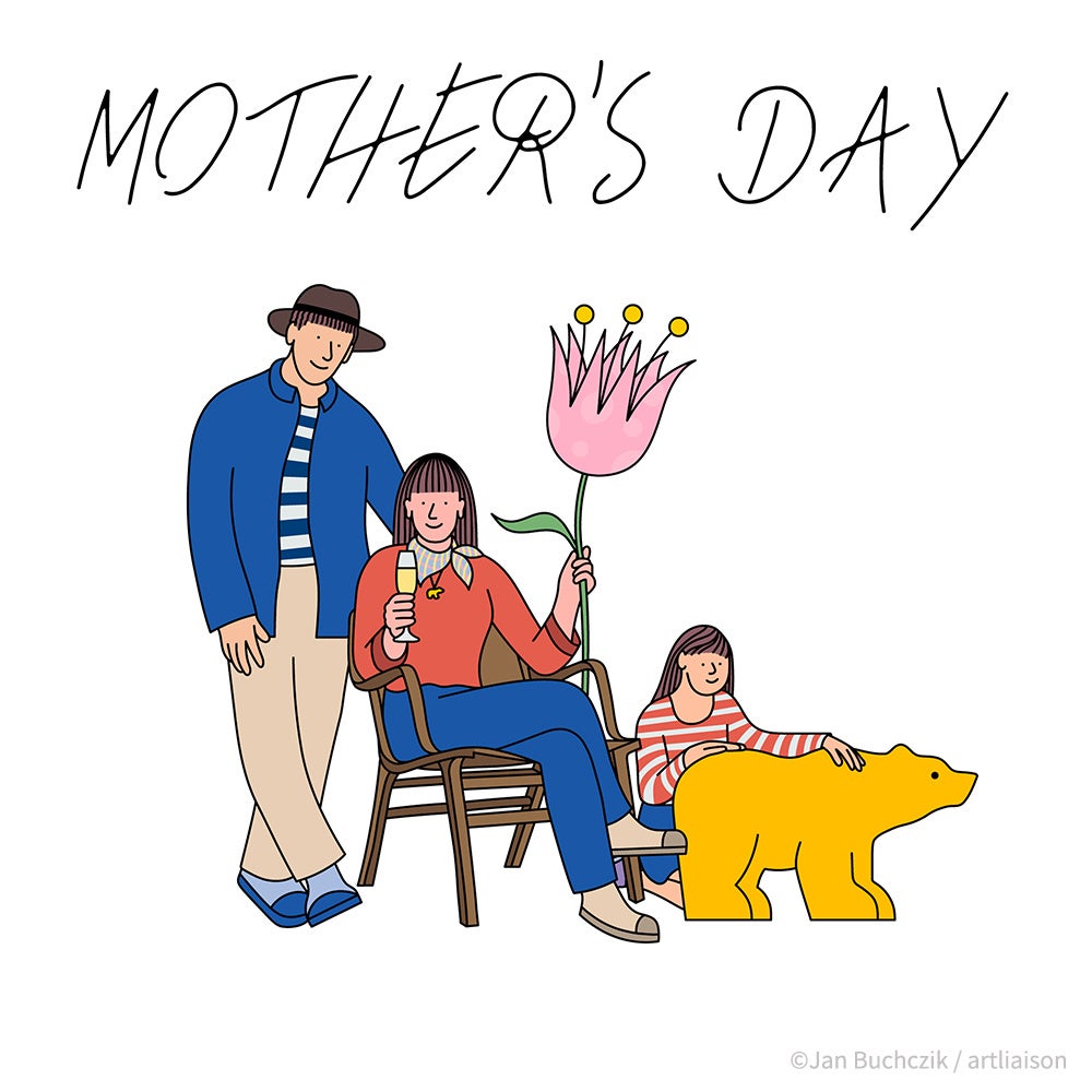 家族の毎日を彩る服を提案するゴールデンベアは、お母さんお父さんに日頃の感謝を伝える「母の日」「父の日」を大切にしています。そんな特別な日を今年は、ヤン・ブハチック氏のイラストとともに盛り上げます。