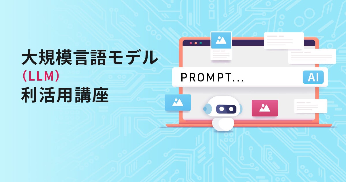「大規模言語モデル(LLM)利活用講座」では、データサイエンティストやソフトウェアエンジニアを想定し、大規模言語モデル(LLM)の基礎知識とLLMを組み込んだアプリの開発方法についても学びます。
