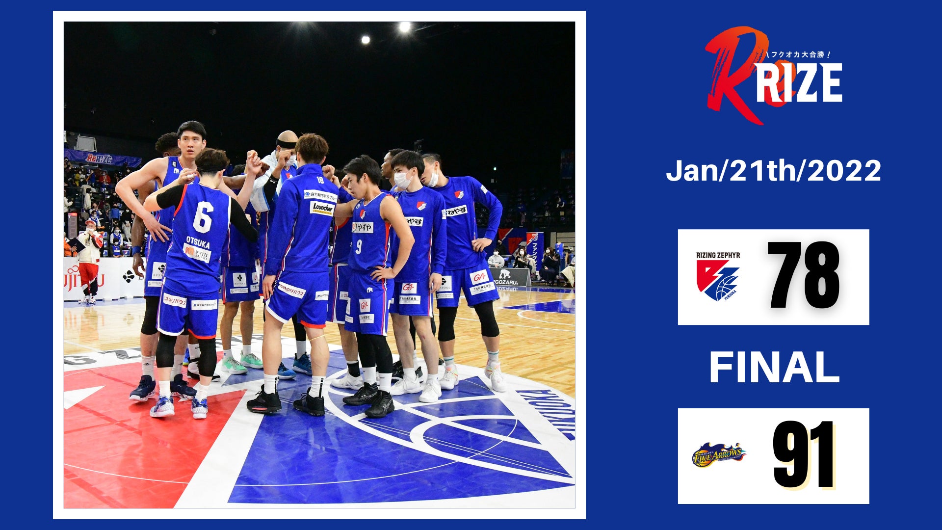 2022年1月21日(金)に開催されましたBリーグ第17節【ライジングゼファーフクオカvs,香川ファイブアローズ】において“福岡78-91香川”の結果となりましたことお知らせいたします。
