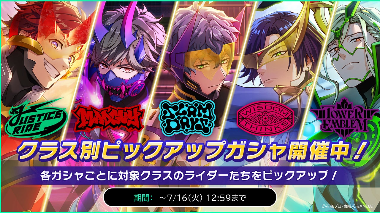 現在ゲーム内ではクラス別ピックアップガシャを開催中です。各クラスの所属メンバーのカードが当たりやすくなるガシャとなっており、各クラスの気になる仮面ライダーをぜひゲットしてみてください。