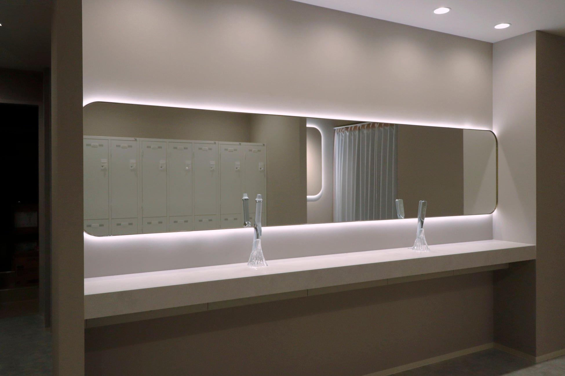 ベージュの色味を基調とした上品でラグジュアリーな内装デザインに、丸みのある照明を取り入れ、心とカラダが解放されるようなリラックス感を演出。日常の喧騒から離れ、自分の価値を高める特別な時間を過ごせる場所となっています。