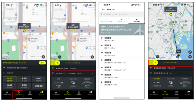 ・予約機能で、羽田空港、成田空港への定額運賃が選択可能。