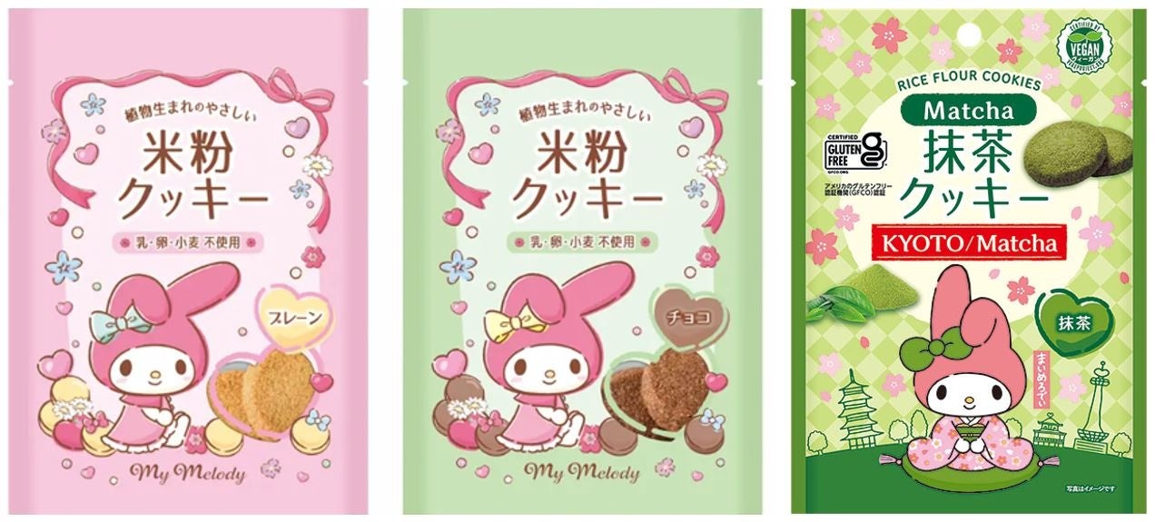 今回新発売する「抹茶味」を含め、「マイメロディ 米粉クッキー」シリーズは全部で3種類!