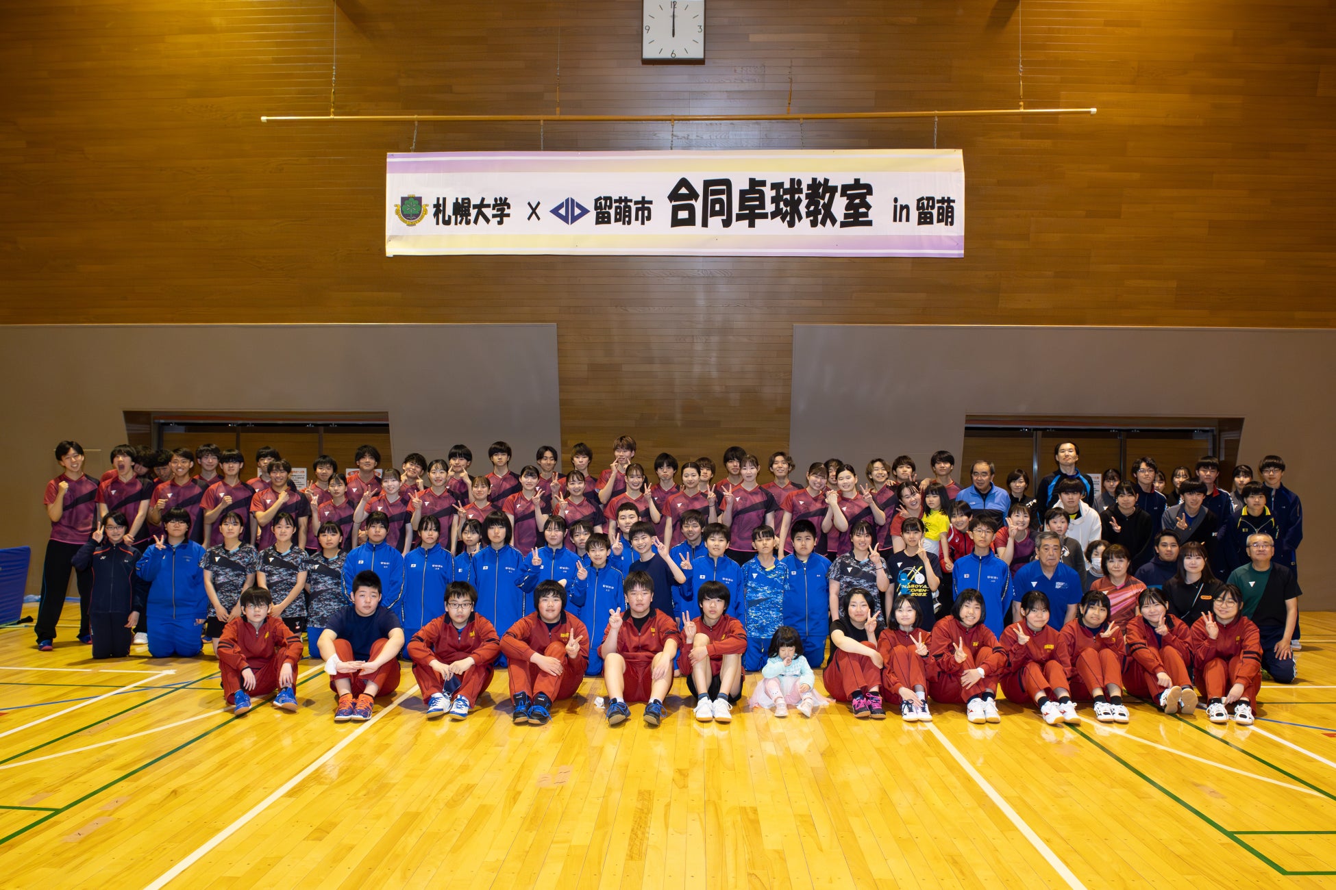 開学と同時に発足し、北海道学生男子1部リーグから唯一、一度も降格せずに戦い続けており、2024年には全日本学生選抜卓球選手権大会男子シングルス入賞、全日本大学総合卓球選手権大会(団体の部)7年連続決勝トーナメント進出と北海道史上初の快挙を果たしました。「北海道から全国へ」、「北海道の歴史を塗り替える」を合言葉に日々練習に励んでいます。また、札幌市、留萌市、比布町で講習会を開催するなど、普及活動や地域貢献活動にも尽力しています。競技を楽しむことや上達する喜び、交流で深まる人と人との繋がりなど、スポーツが本来持っている原点を感じる機会を増やすことで、競技力だけでなく人間力向上にも力を入れています。