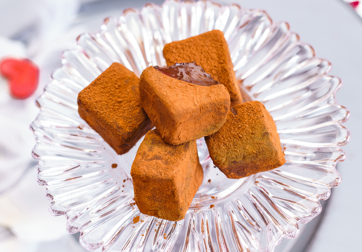 中のチョコレートは生チョコのように滑らかで香りとコクが引き立つように作っています。