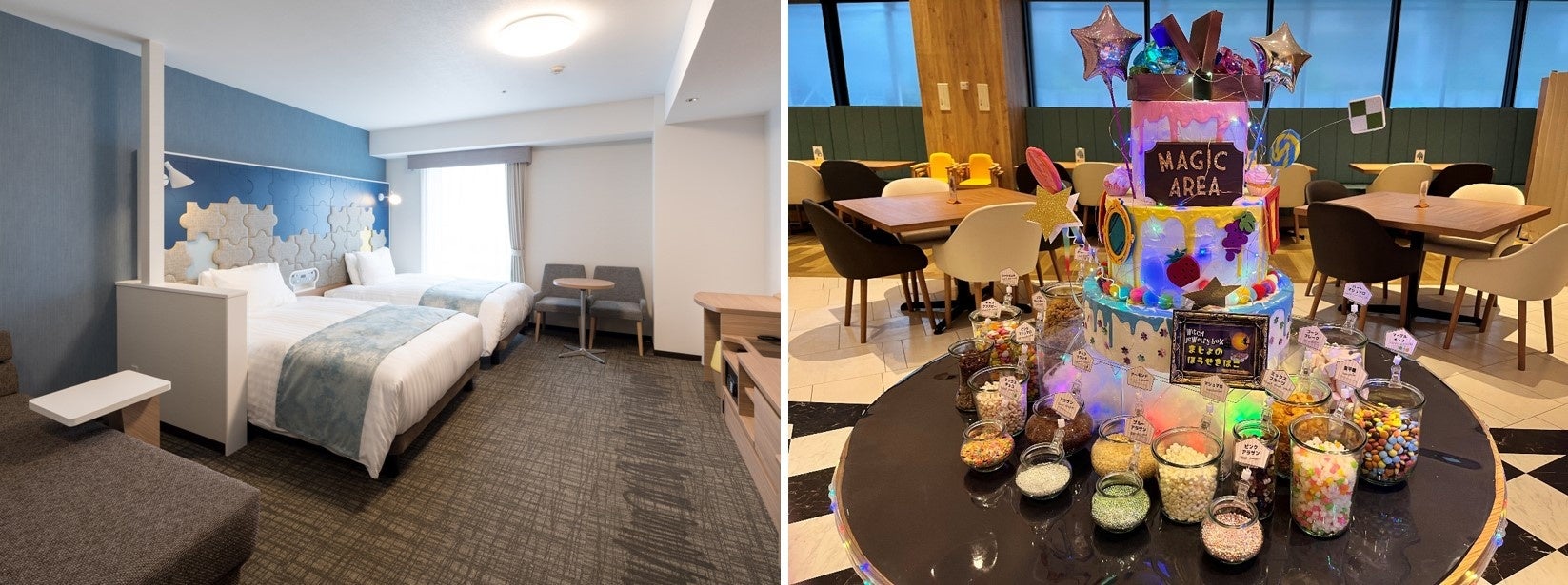 コンフォートスイーツ東京ベイはお子さま連れにやさしいホテルです。全室ツインルーム・バストイレ別の客室には、140cm幅のダブルベッドを設置。小学6年生までのお子さまの添い寝は無料で、お子さまと一緒にゆったり眠れます。館内にはコンビニを併設しており、雨でも安心して利用できます。朝食会場には「冒険」をテーマにしたキッズコーナーがあり、自分でつくれるオリジナルスイーツやチョコレートファウンテンなど、お子さまと一緒に楽しめるメニューが並びます。
