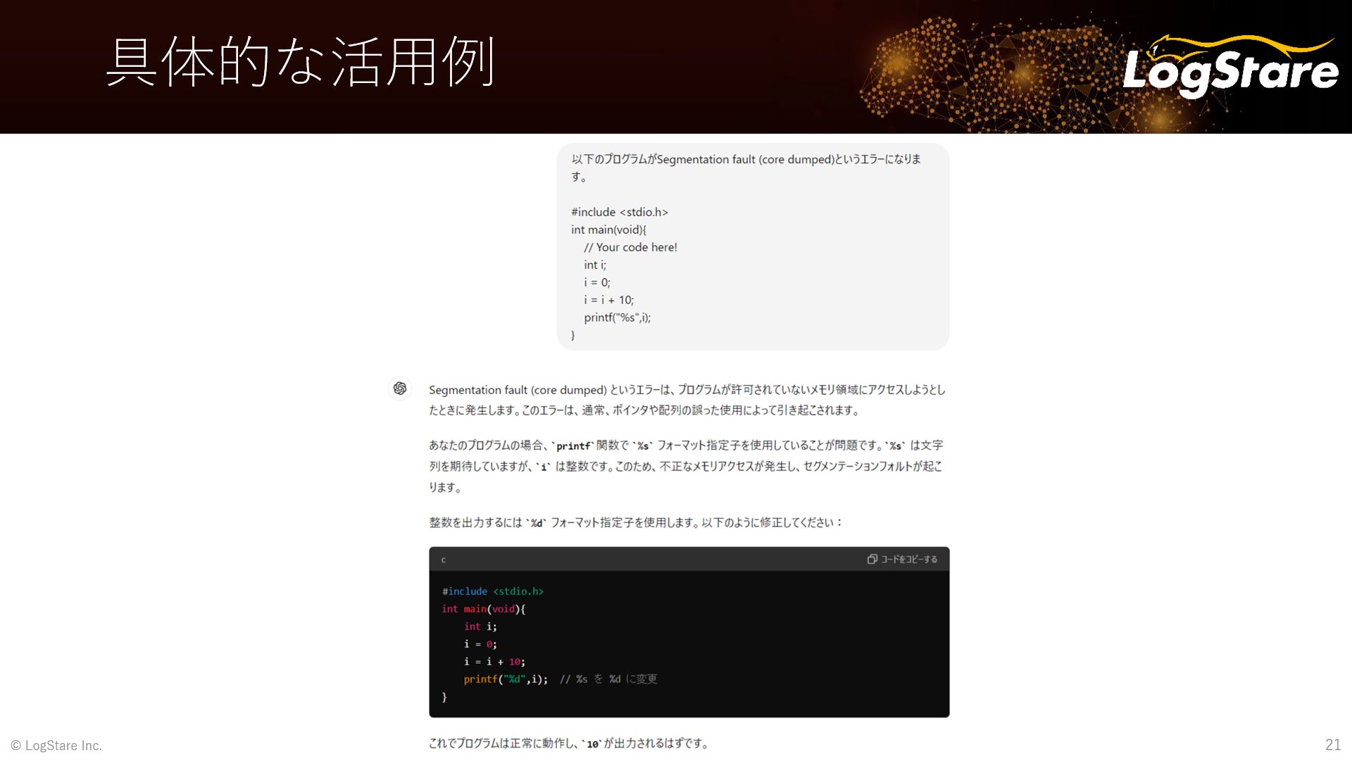 セミナー前半では生成AIによるログ分析のデモに先立ち、昨今のビジネスにおける生成AIの動向の解説がありました。