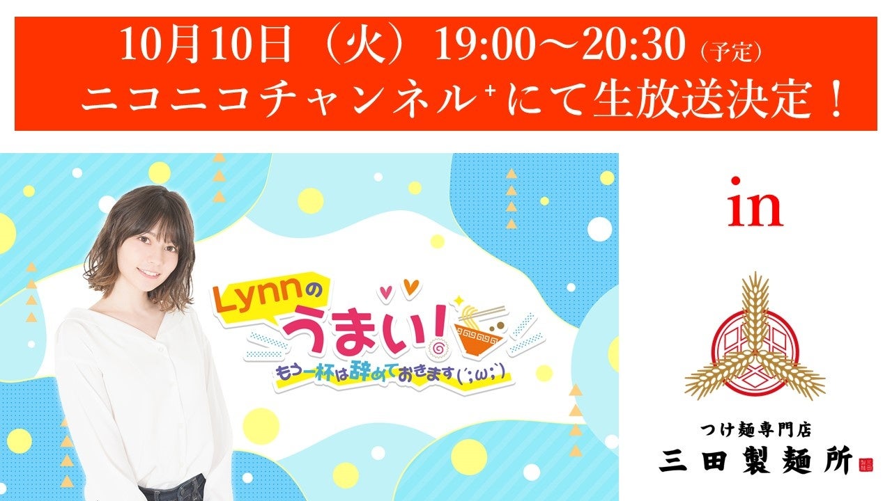 『Lynn のうまい!もう一杯は辞めておきます(´;ω;`)』in三田製麺所 10月10日(火)19時より番組史上初・店舗からの生配信が決定!