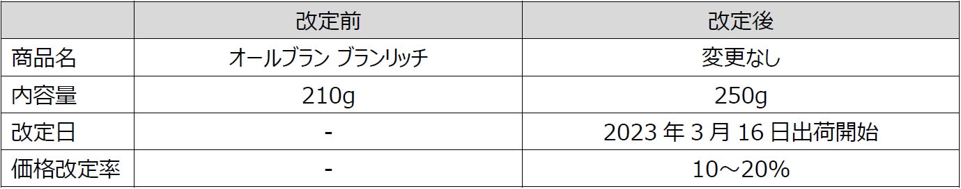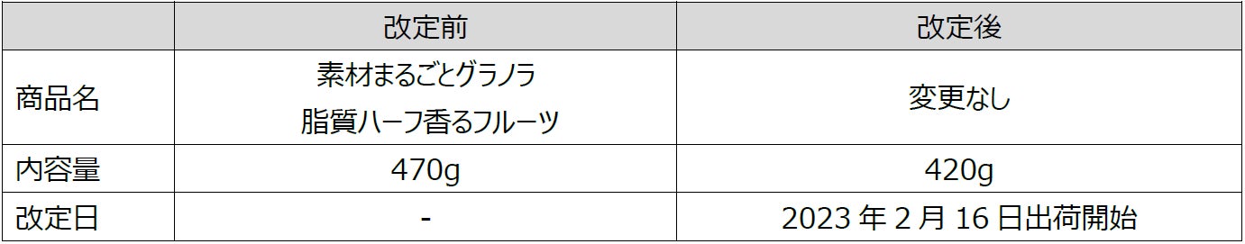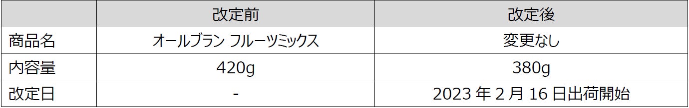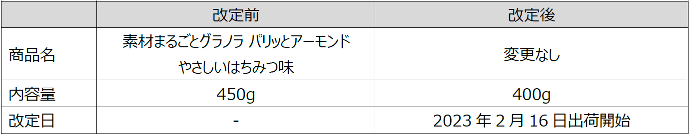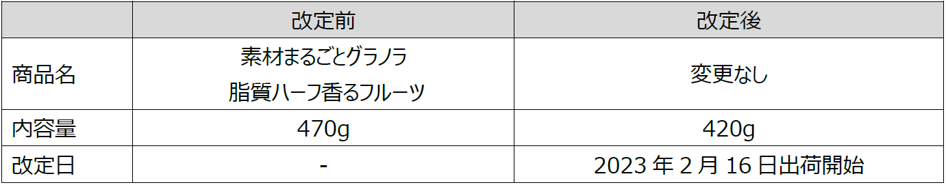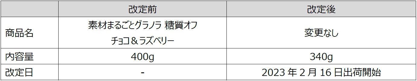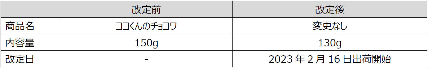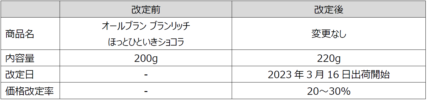 近年の原材料価格の大幅な上昇、並びに資材費やエネルギーコストなどの高騰を受け、自社の企業努力によるコスト削減だけでは、現状の内容量や価格の維持が極めて困難な状況に至っていることから、やむを得ず下記の通り内容量変更および商品価格の改定を実施させていただきます。