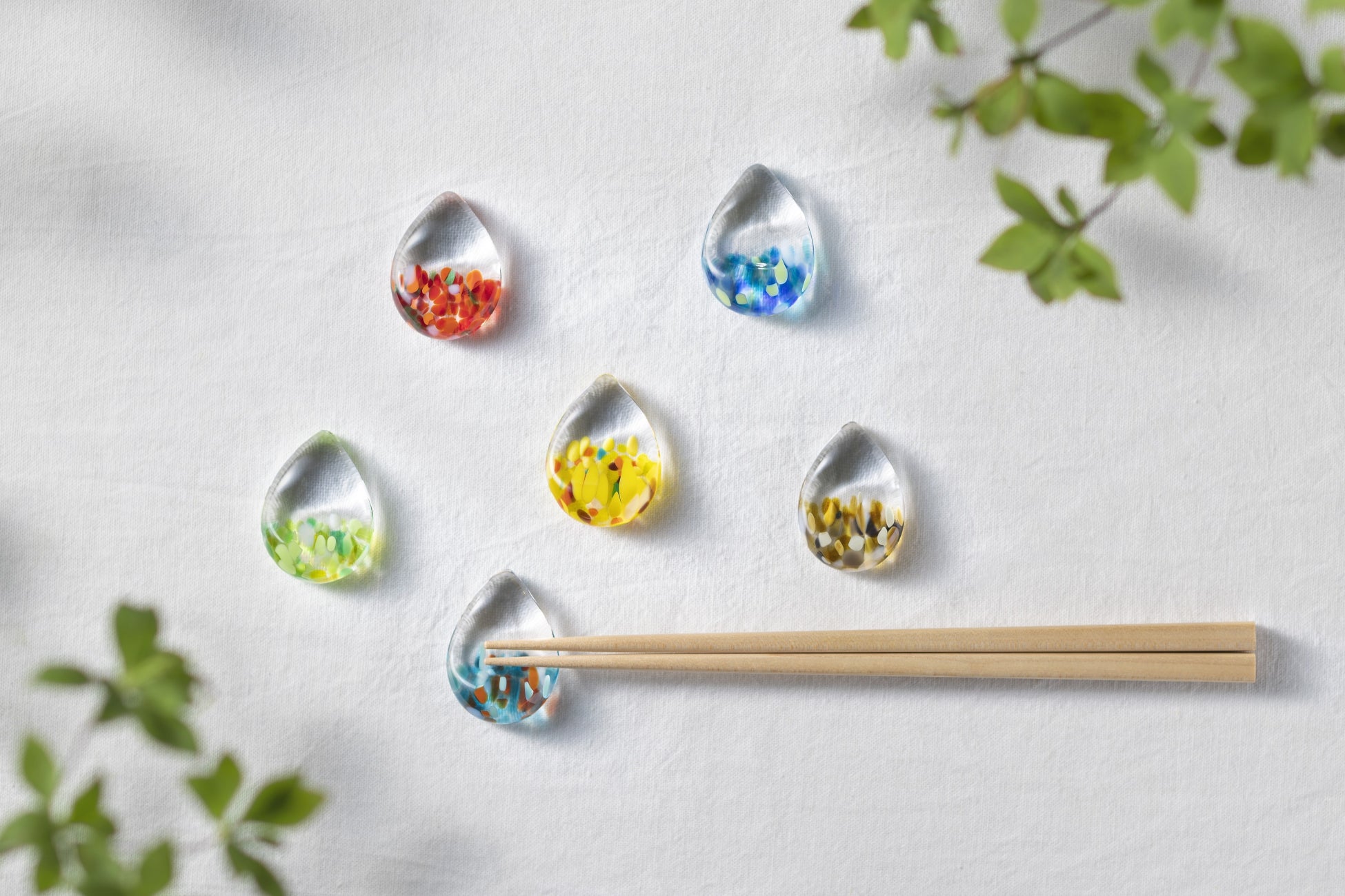 “白神の豊かな自然を守りたい”―下山学園高等学校の生徒たちの思いから、「津軽びいどろ」との共同開発によって生まれた箸置きシリーズです。