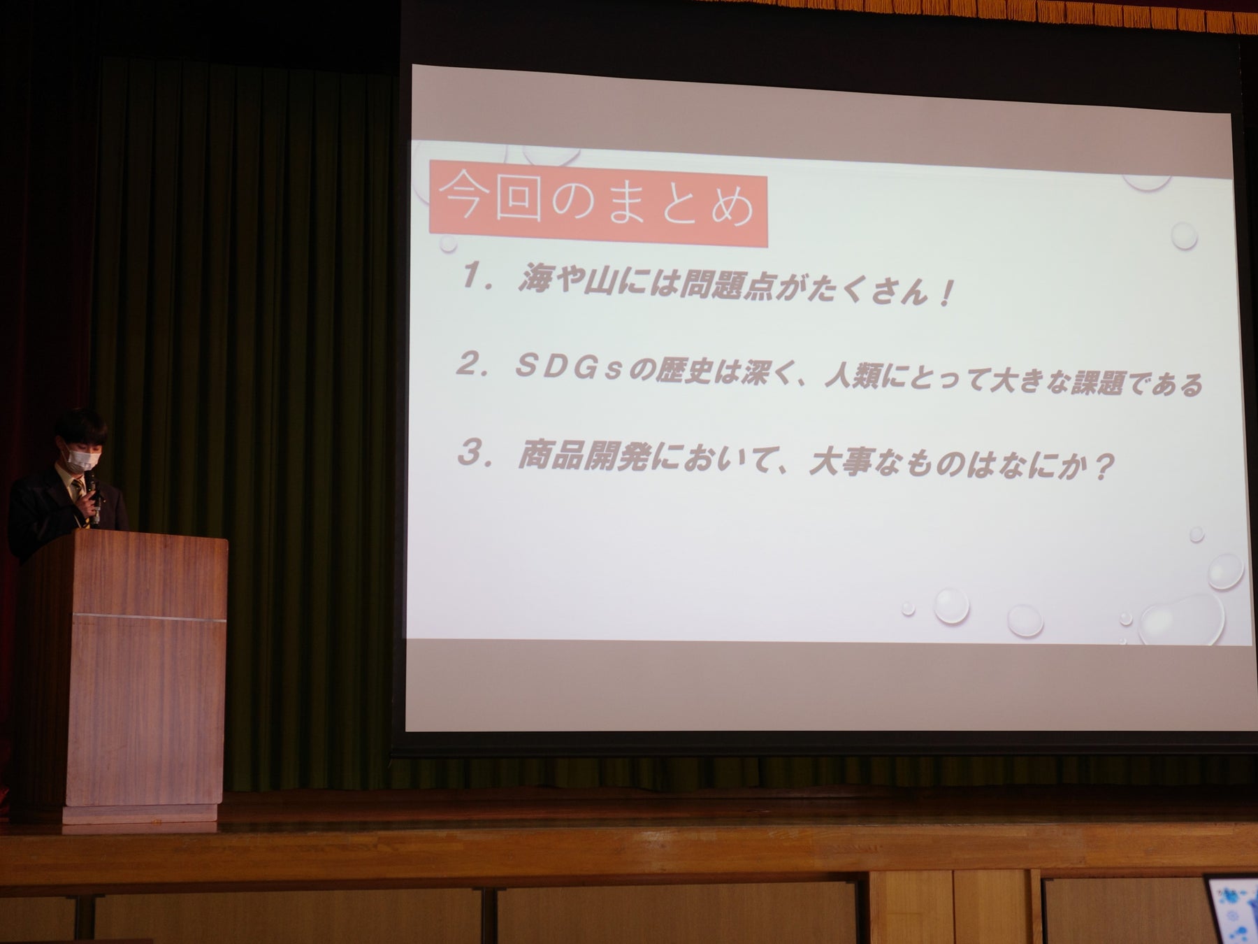 同年12月、津軽びいどろのデザイナーが出張授業を実施。SDGsを学ぶ3年生の生徒たちに向けて「ものづくりを通じた社会課題解決」の講義を行いました。授業を受けた生徒たちは、校内の課題研究発表会で「津軽びいどろを通じたSDGsの呼びかけ」をテーマに取り上げ、2024年3月に卒業しました。